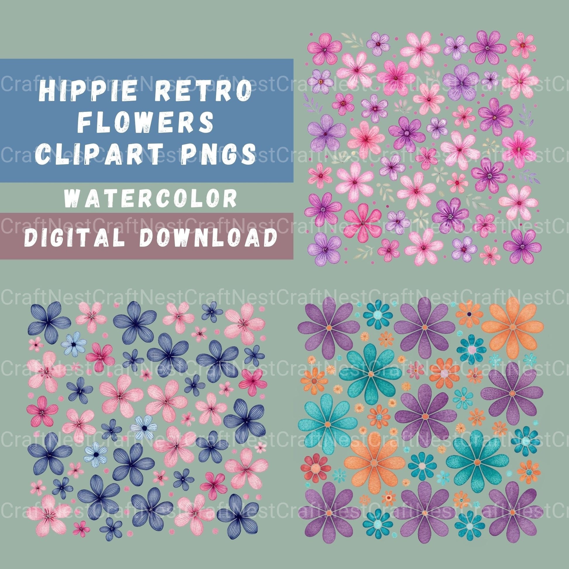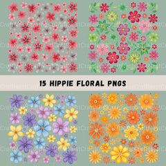 Hippie Flowers Clipart Bundle