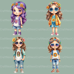 Peace with this Hippie Girls ( 2) 12 Clipart Bundle, featuring hippie girl designs, perfect for boho people crafts.