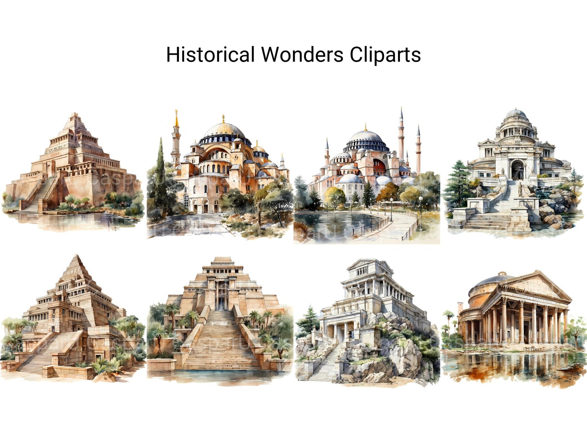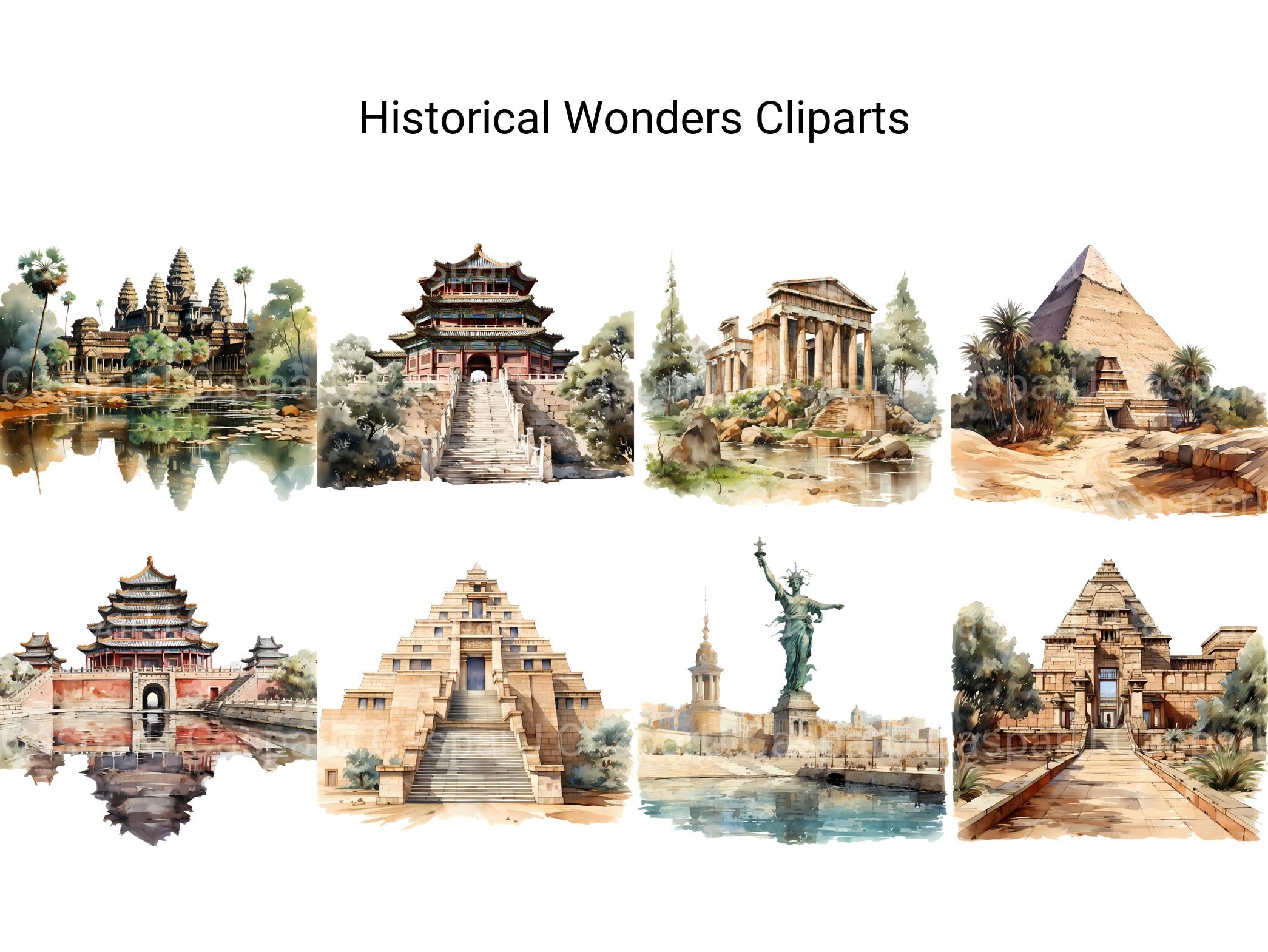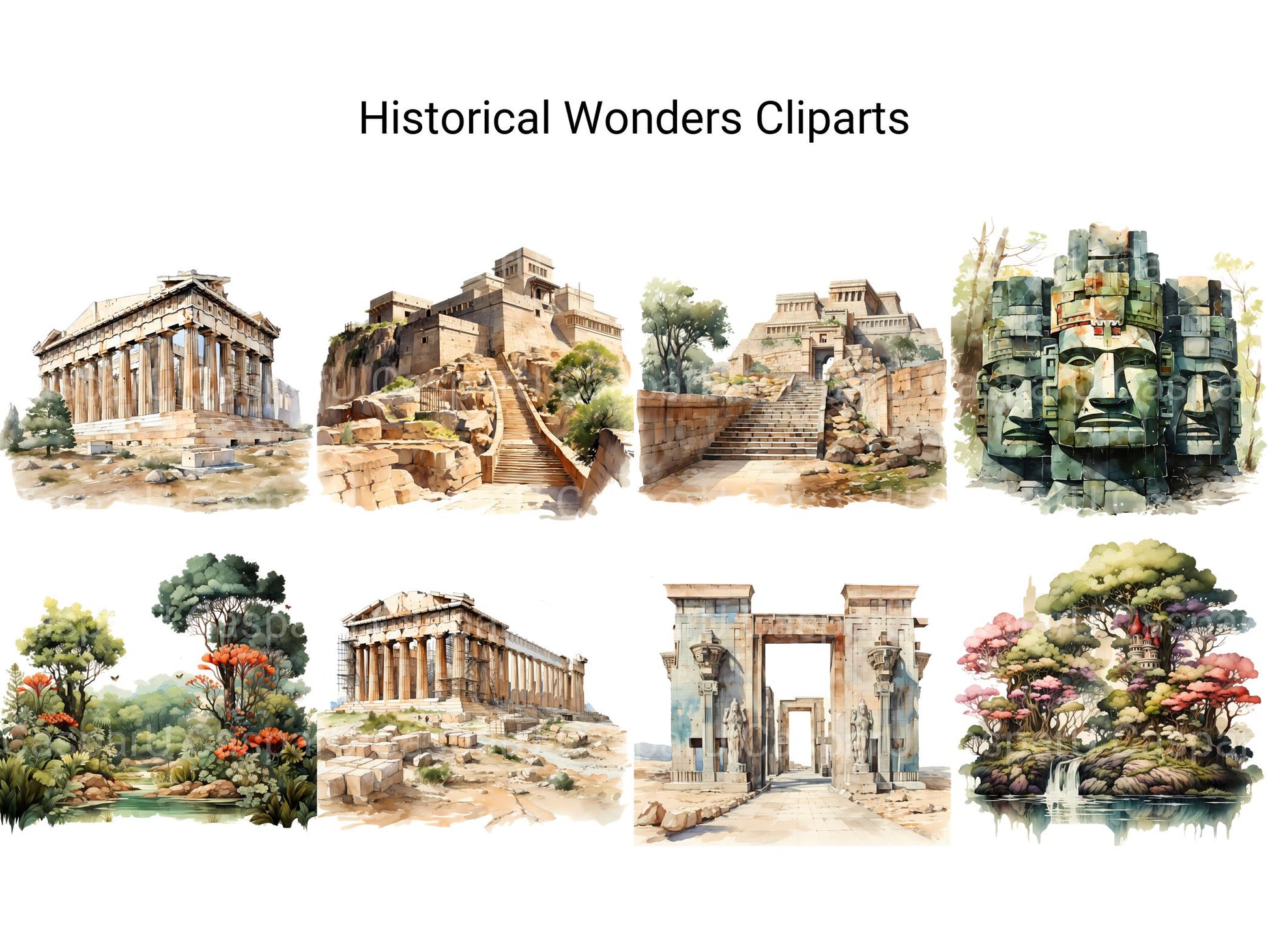 Journey through time with digital clip art featuring historical wonders. These illustrations showcase iconic landmarks, ancient civilizations, and architectural marvels from around the world, perfect for adding a sense of grandeur and fascination to your projects, whether for history textbooks, travel brochures, or educational presentations, captivating viewers with the allure of bygone eras.