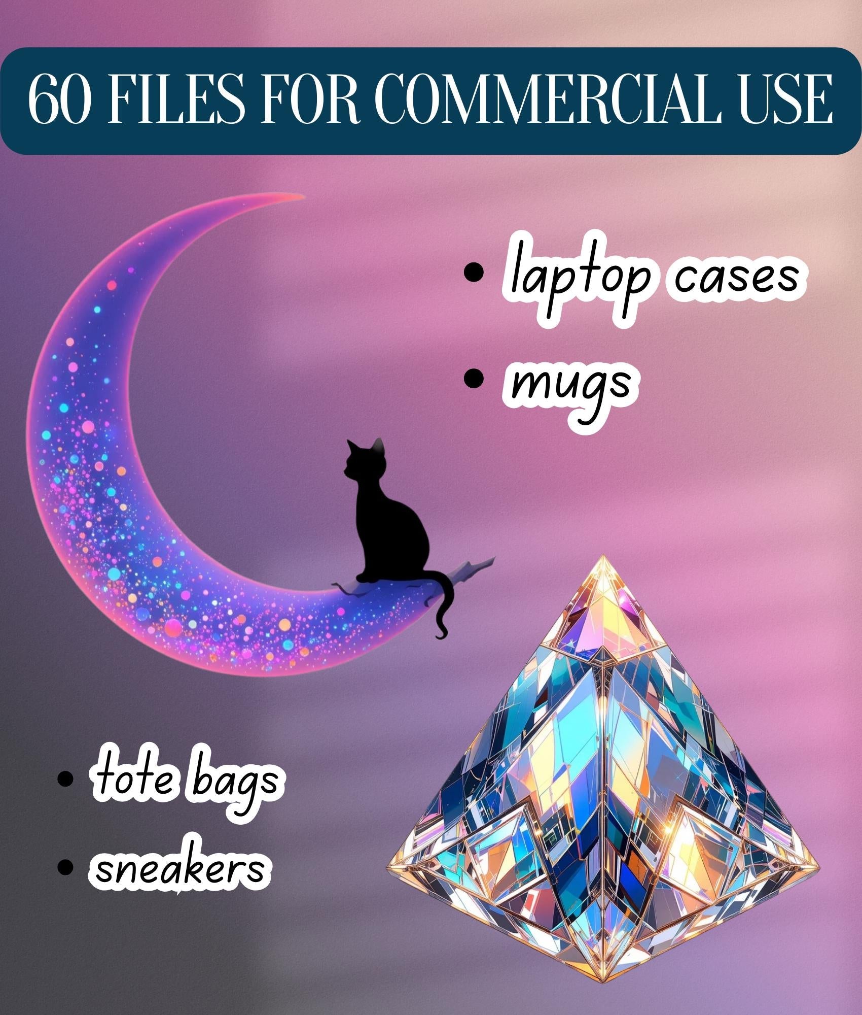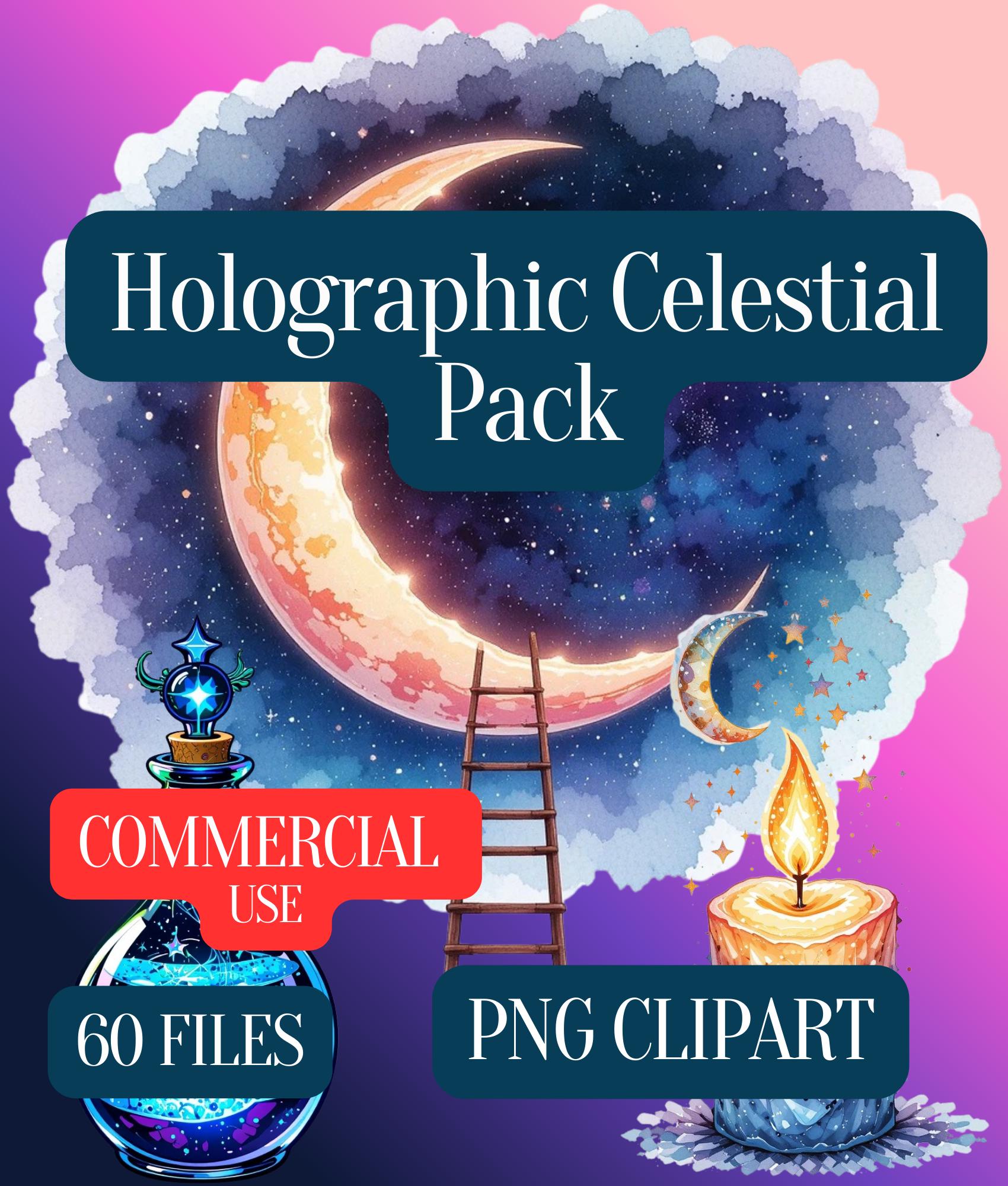 Unlock the cosmos with our Holographic Celestial Clipart Bundle, featuring stunning starry designs perfect for mystical projects. Ideal for digital art, scrapbooking, and enchanting crafts, this collection brings a touch of the universe to your creations. Dive into a galaxy of creativity with celestial elements that shine with holographic brilliance, making your designs truly out of this world.
