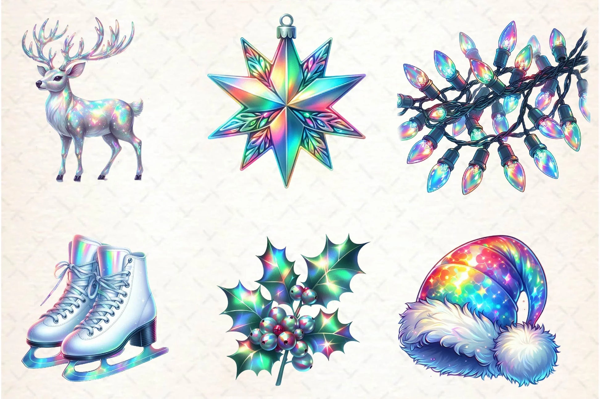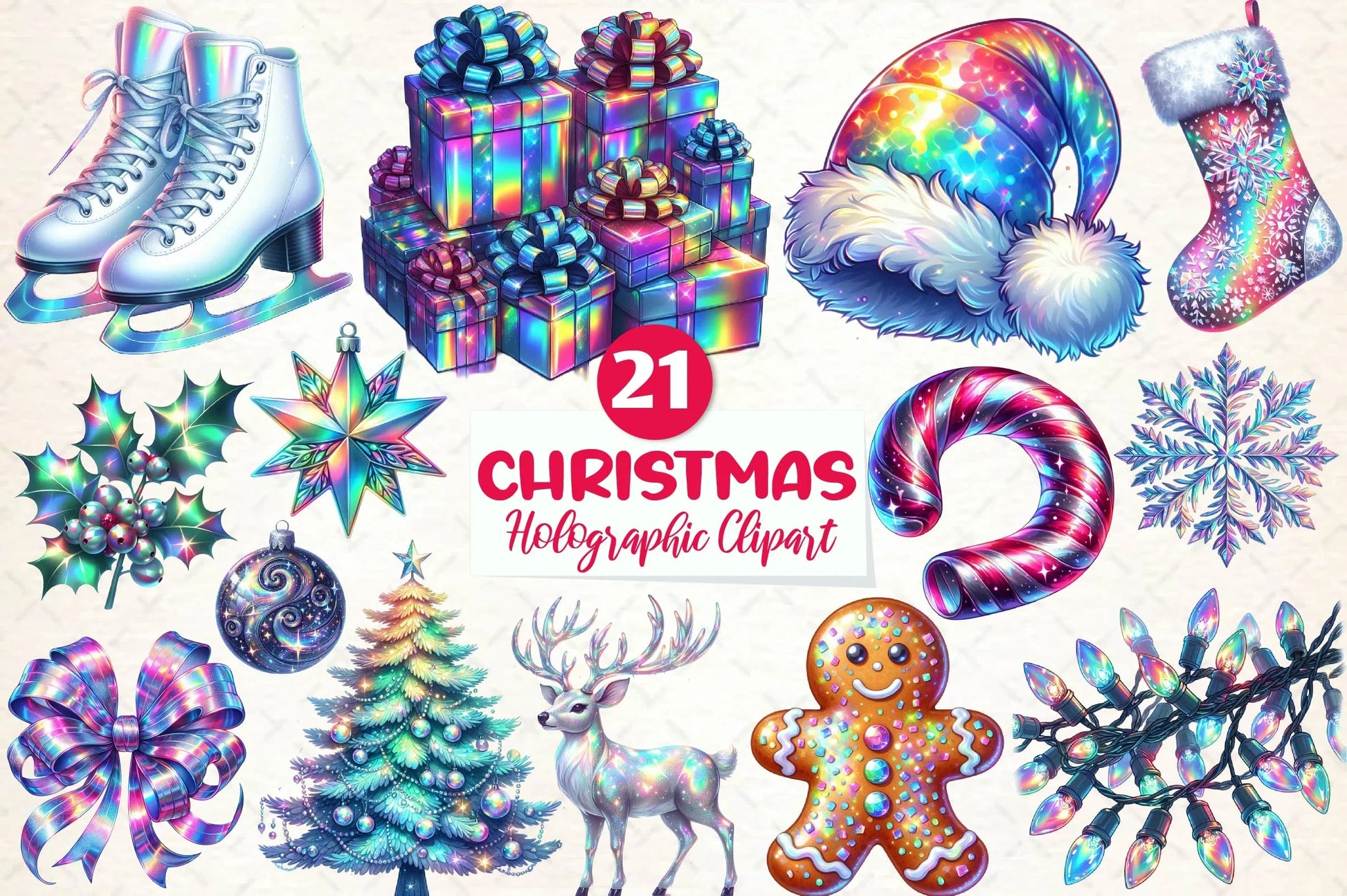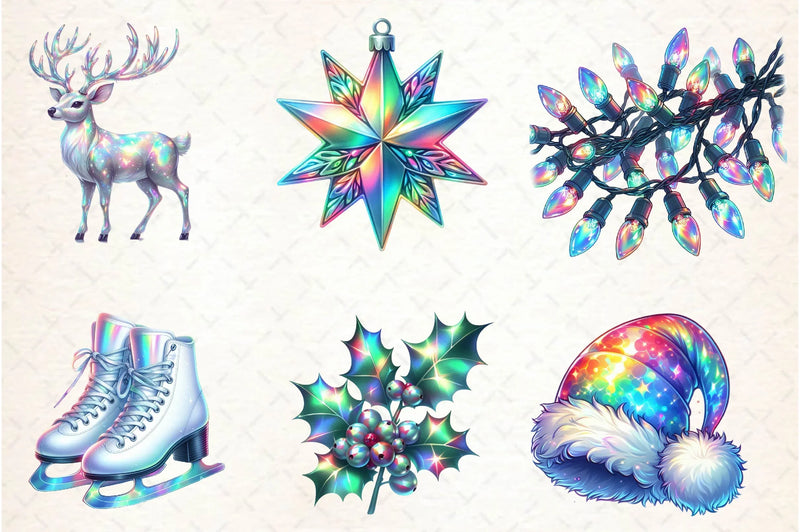 Enhance your holiday projects with our Holographic Christmas Clipart Bundle. Featuring vibrant, shimmering designs perfect for festive crafts, digital scrapbooking, and seasonal decorations. Capture the magic of Christmas with unique, eye-catching clipart that brings your creative visions to life.