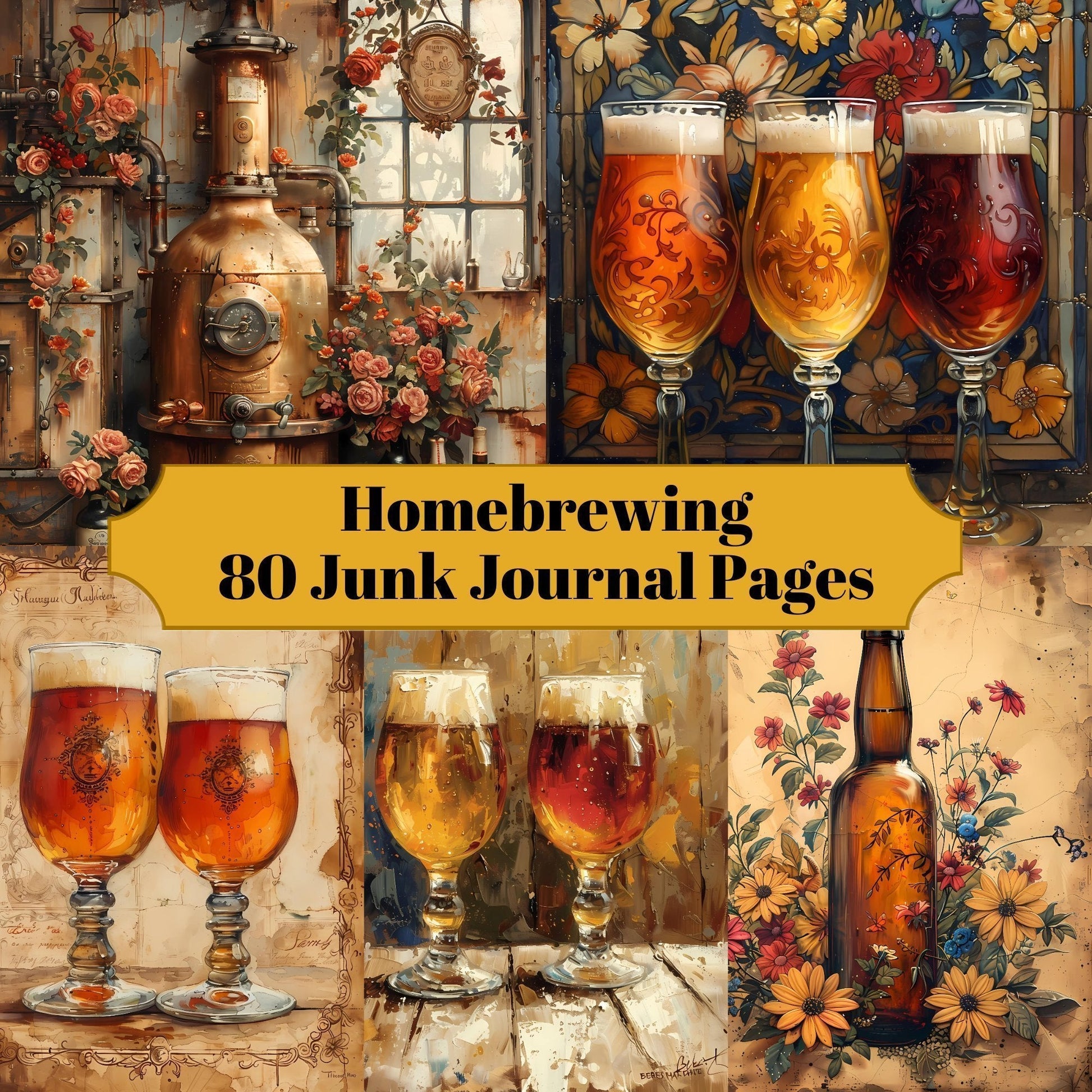 Tap into the art of craft brewing with our homebrewing-themed digital junk journal. Explore its pages adorned with hops, barley, and brewing equipment illustrations, offering a space to log recipes, brewing notes, and tasting experiences. Let this journal be your brewmaster's logbook, documenting your journey into the world of homemade brews and the satisfaction of crafting your own beer creations.