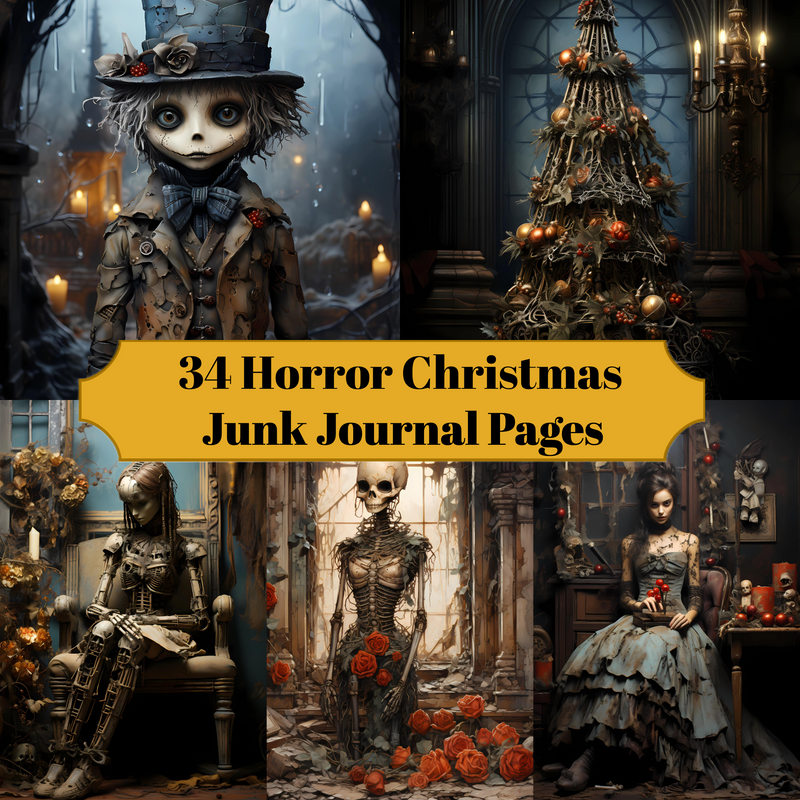 Dare to venture into the spooky side of the holiday season with our digital junk journal inspired by horror themes! Featuring eerie landscapes, creepy creatures, and chilling designs, this journal is perfect for those who love a good scare. Whether you're a horror aficionado or just looking to add a thrill to your Christmas scrapbooking, this journal is sure to send shivers down your spine and make your holiday season delightfully frightful.