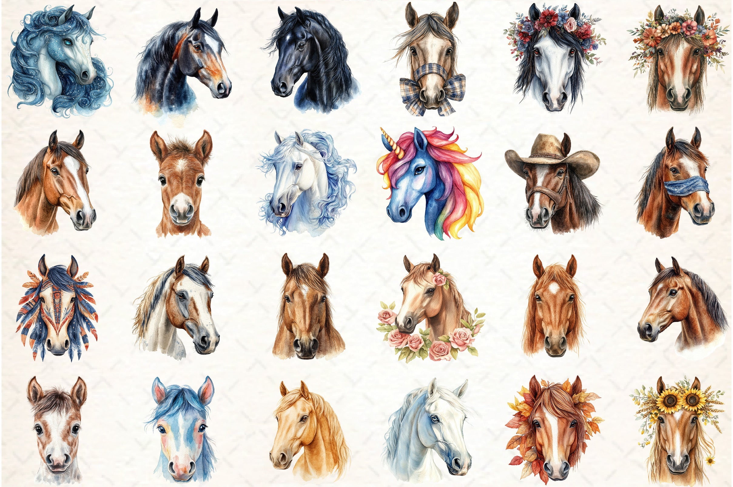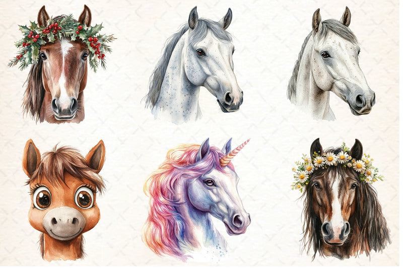 Unleash your imagination with this versatile Horse Face Clipart Bundle, ideal for scrapbooking, invitations, and personalized gifts.