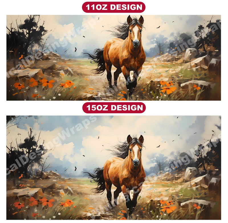 Saddle up with our horse-themed digital mug wraps, capturing the grace and beauty of these majestic creatures. Whether you're a horse enthusiast or simply appreciate their elegance, these designs are sure to impress.