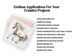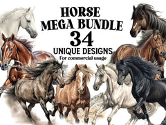 Gallop into the world of elegance with our Horses digital clip arts, featuring a diverse array of breeds in stunning detail. From majestic stallions to gentle foals, these illustrations capture the grace and strength of these beautiful animals, perfect for projects that celebrate the spirit of freedom and beauty.