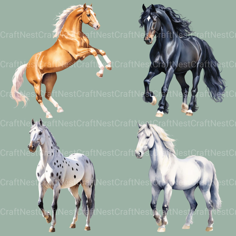 Gallop with this Horses 12 Clipart Bundle, featuring horse designs, perfect for equestrian animal crafts.
