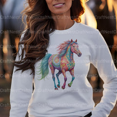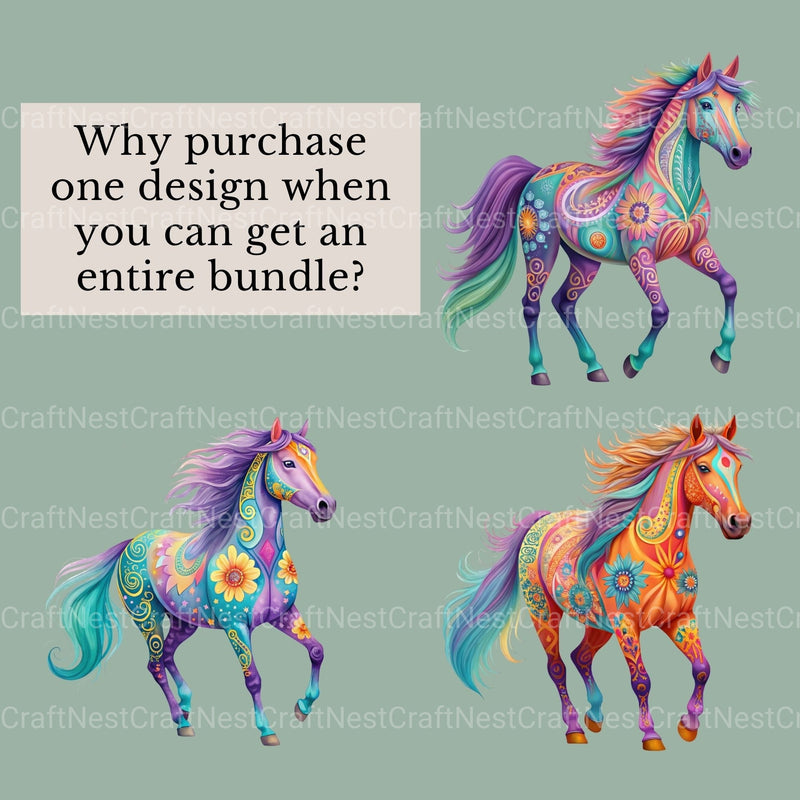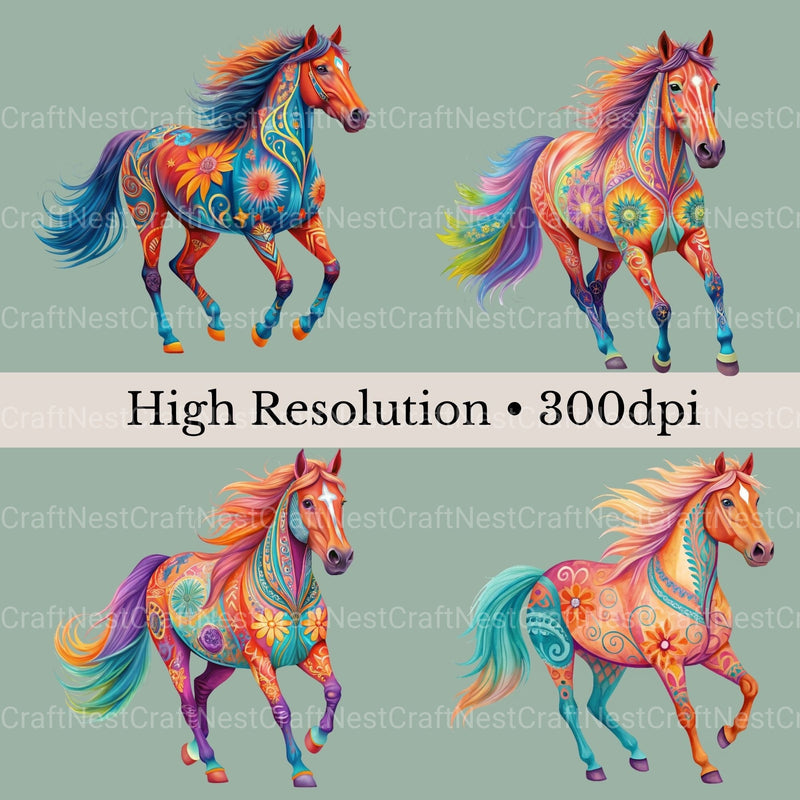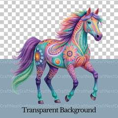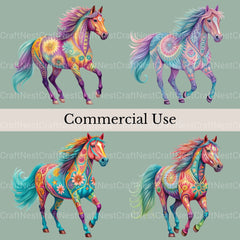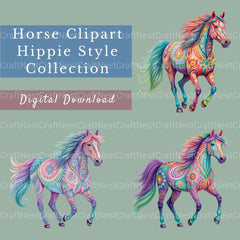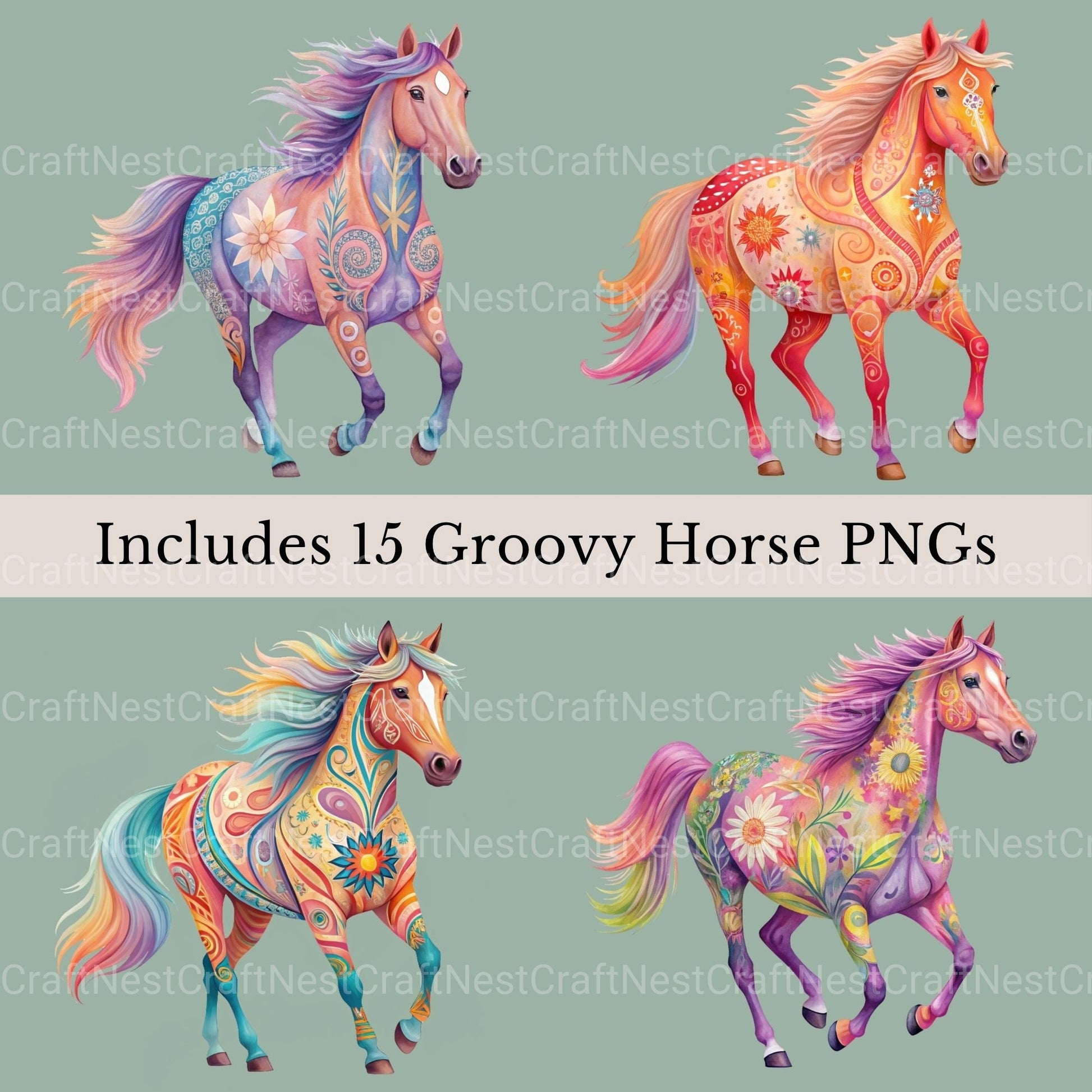 Groove with this Horses Hippie Groovy 15 Clipart Bundle, featuring hippie horse designs, ideal for horse boho crafts.
