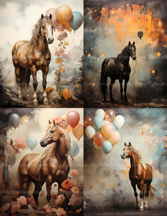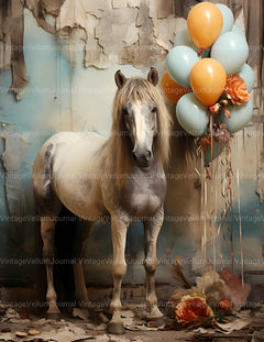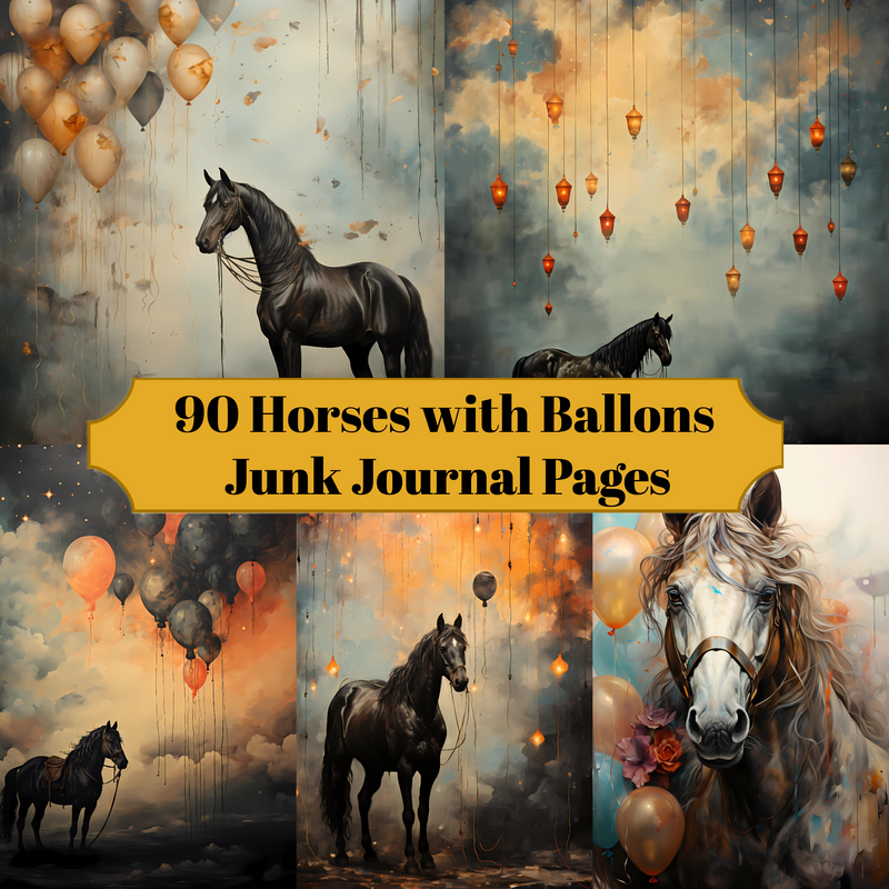 Lift your spirits with our Horses with Balloons digital junk journal. Each page is adorned with illustrations of jubilant horses frolicking amidst colorful balloons and festive decorations, inviting you to celebrate the joy and magic of special occasions, offering a delightful journey through a world where every balloon carries dreams aloft and every horse is a symbol of boundless cheer.