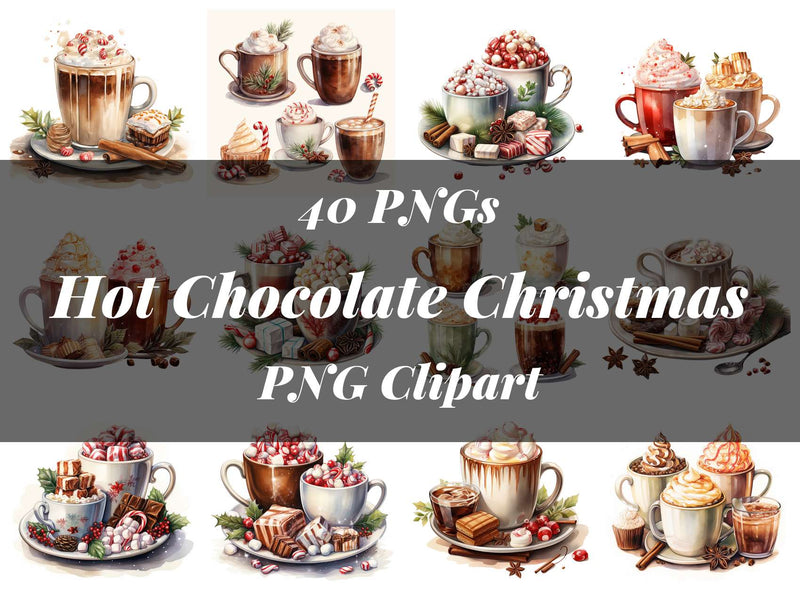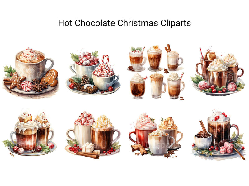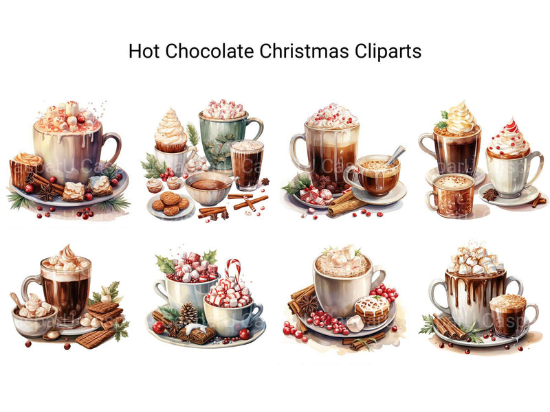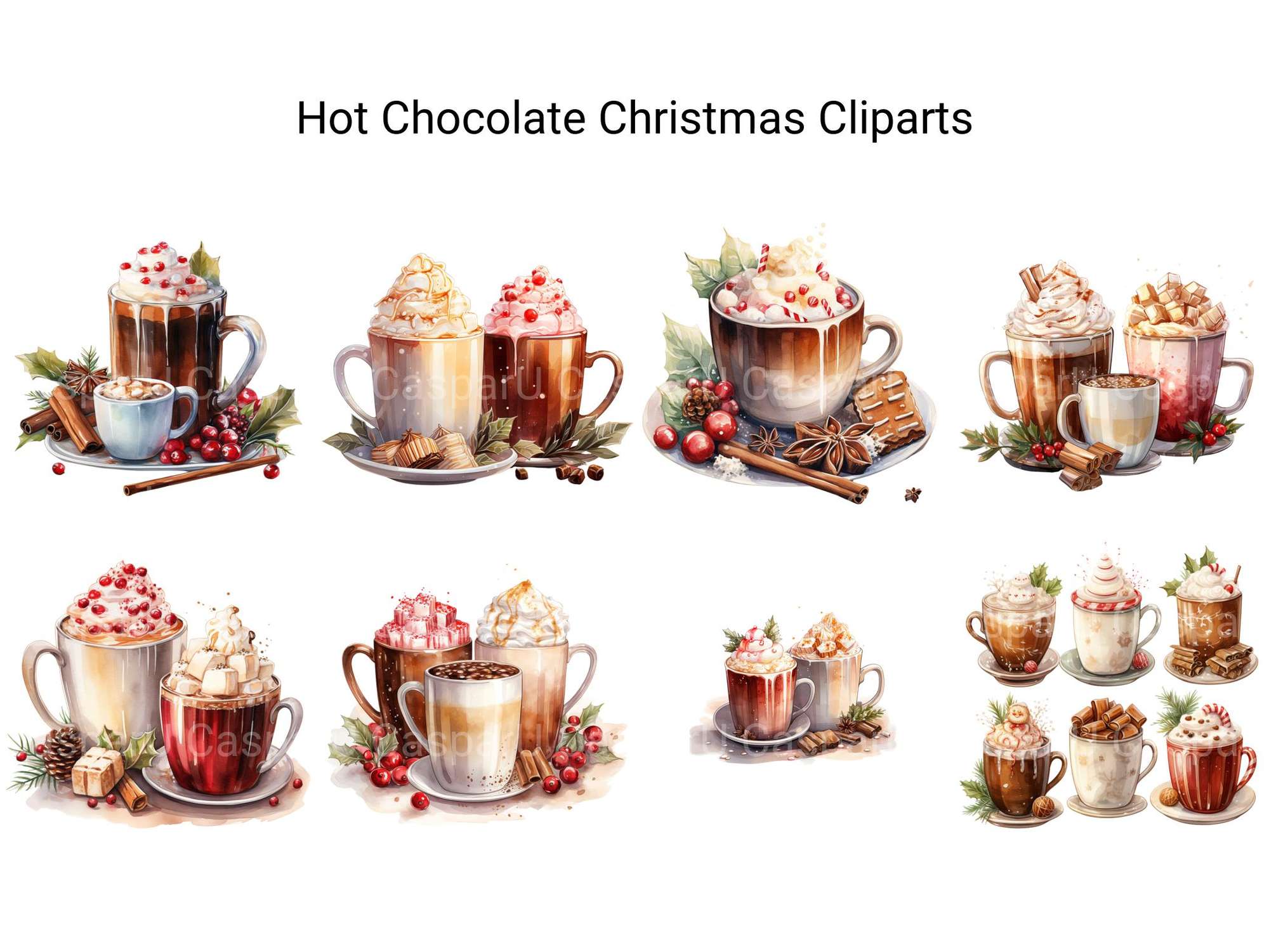 Cozy up with this Hot Chocolate Christmas Clipart set, featuring warm holiday drink designs, perfect for festive crafts.