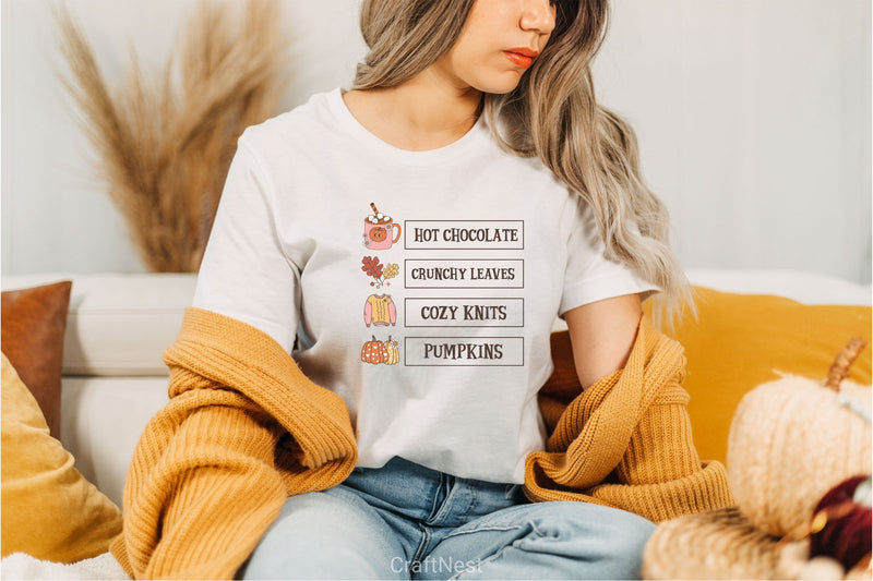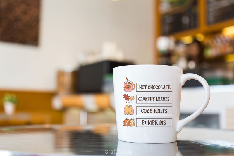 Cozy with this Hot Chocolate Crunchy Leaves Cozy Knits Pumpkins Clipart Bundle, featuring autumn comfort designs, perfect for fall self-care crafts.