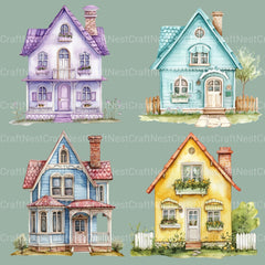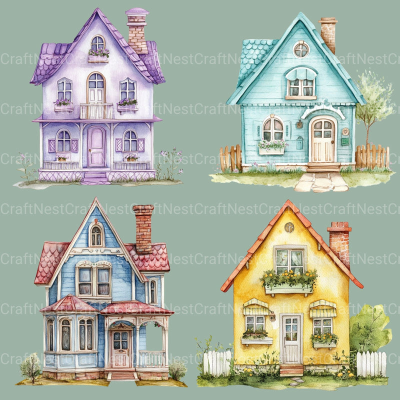 Home with this Houses 12 Clipart Bundle, featuring charming house designs, ideal for cottage travel crafts.