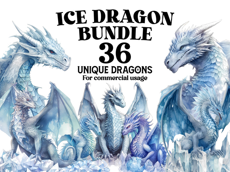 Enter a realm of frosty enchantment with our Ice Dragon clip art. These majestic digital illustrations depict dragons adorned with icy scales and breath that freezes, adding a touch of wintry magic to your creative projects.