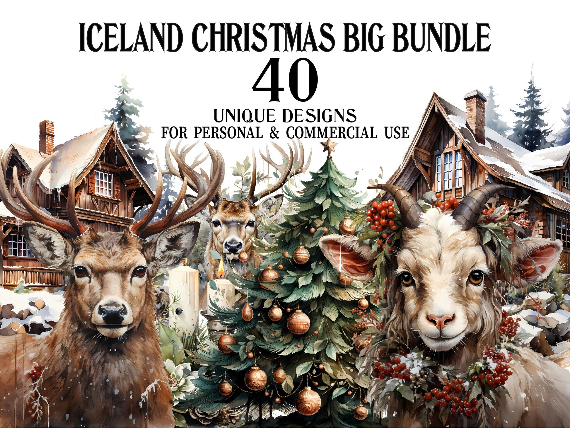 Transport yourself to a winter wonderland with our captivating Iceland Christmas clip art. These digital illustrations showcase the beauty and tranquility of Icelandic landscapes, offering a unique and enchanting perspective on the holiday season. Perfect for cards, posters, or travel-themed projects, these Iceland-inspired graphics will immerse viewers in the magic of Christmas against a backdrop of snow-capped mountains and icy vistas.