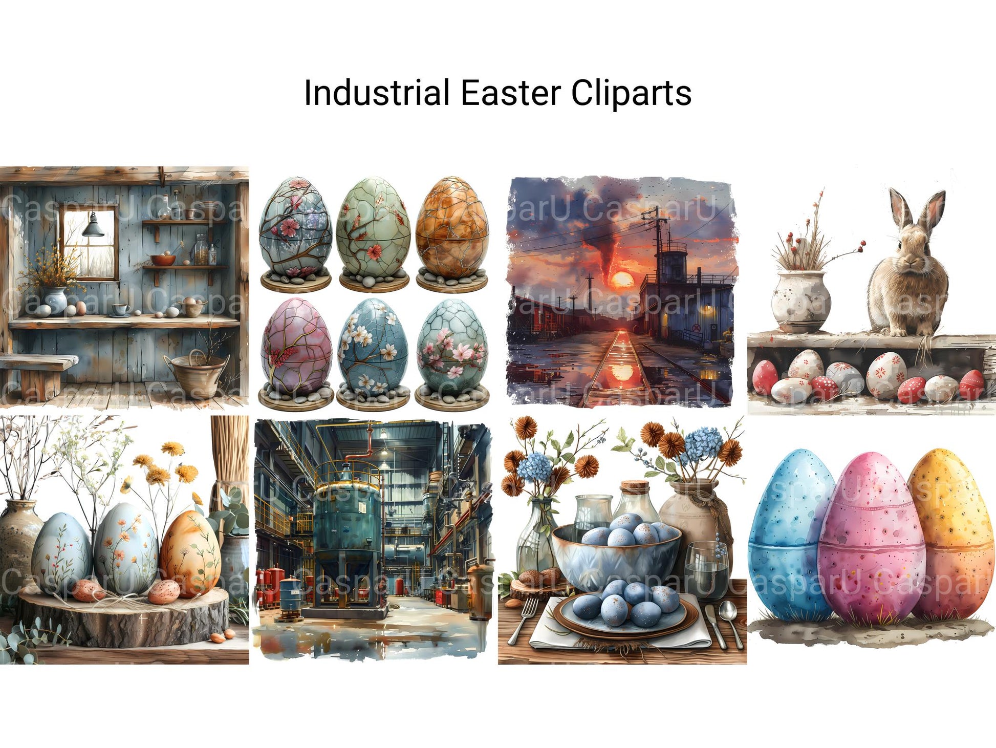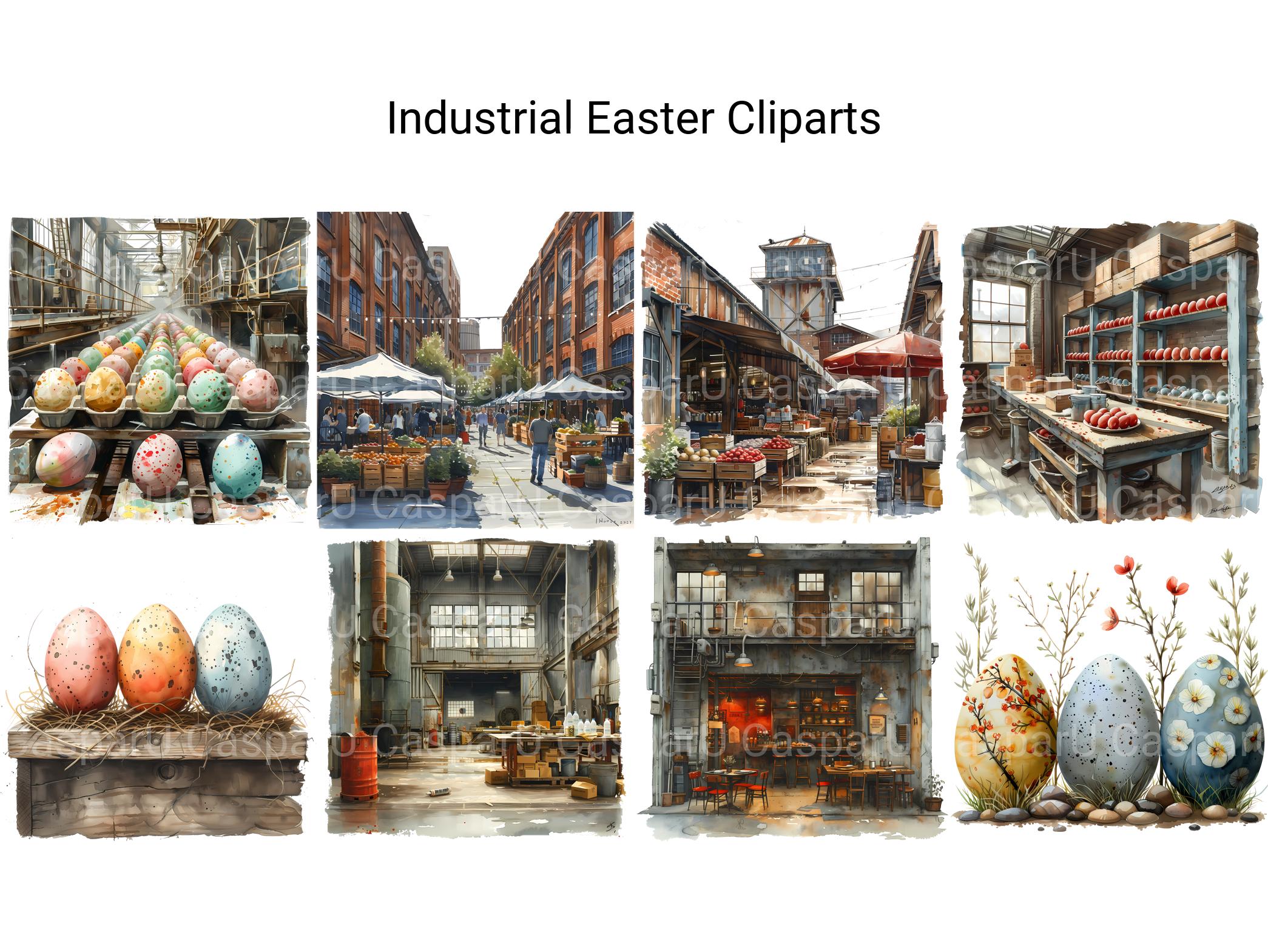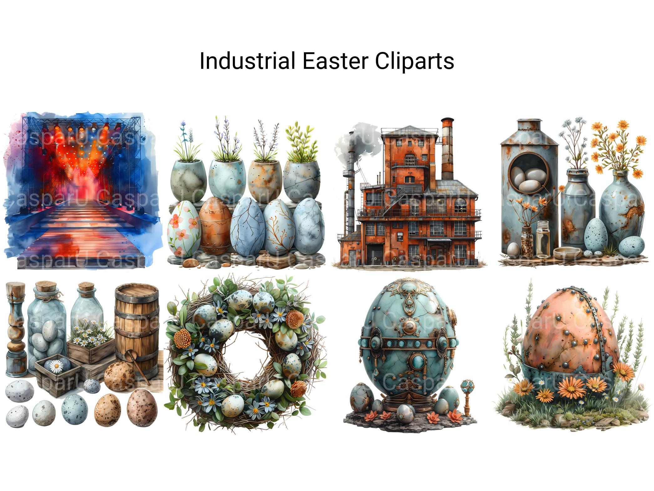 Explore the industrial aesthetic with Industrial Easter digital clip art, featuring industrial-inspired illustrations, mechanical designs, and urban motifs that celebrate the rugged beauty of industrial landscapes. These industrial-chic images infuse Easter with a sense of modernity and urban sophistication, perfect for adding an edgy twist to your projects. Let Industrial Easter transport you to the world of urban exploration and industrial design, inviting viewers to embrace the raw beauty of industrial-inspired Easter.