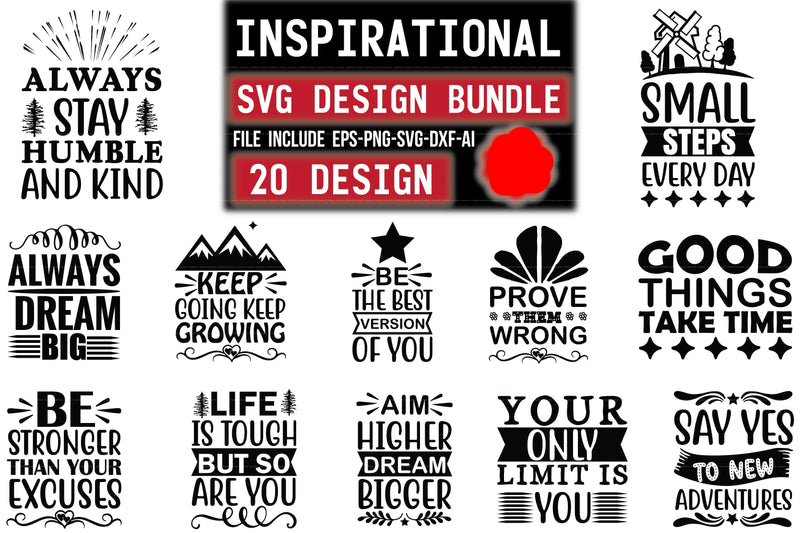 Unleash creativity with the Inspirational Design SVG Bundle, featuring a diverse collection of motivational quotes and artistic elements, perfect for crafting unique home decor, personalized gifts, and uplifting DIY projects.
