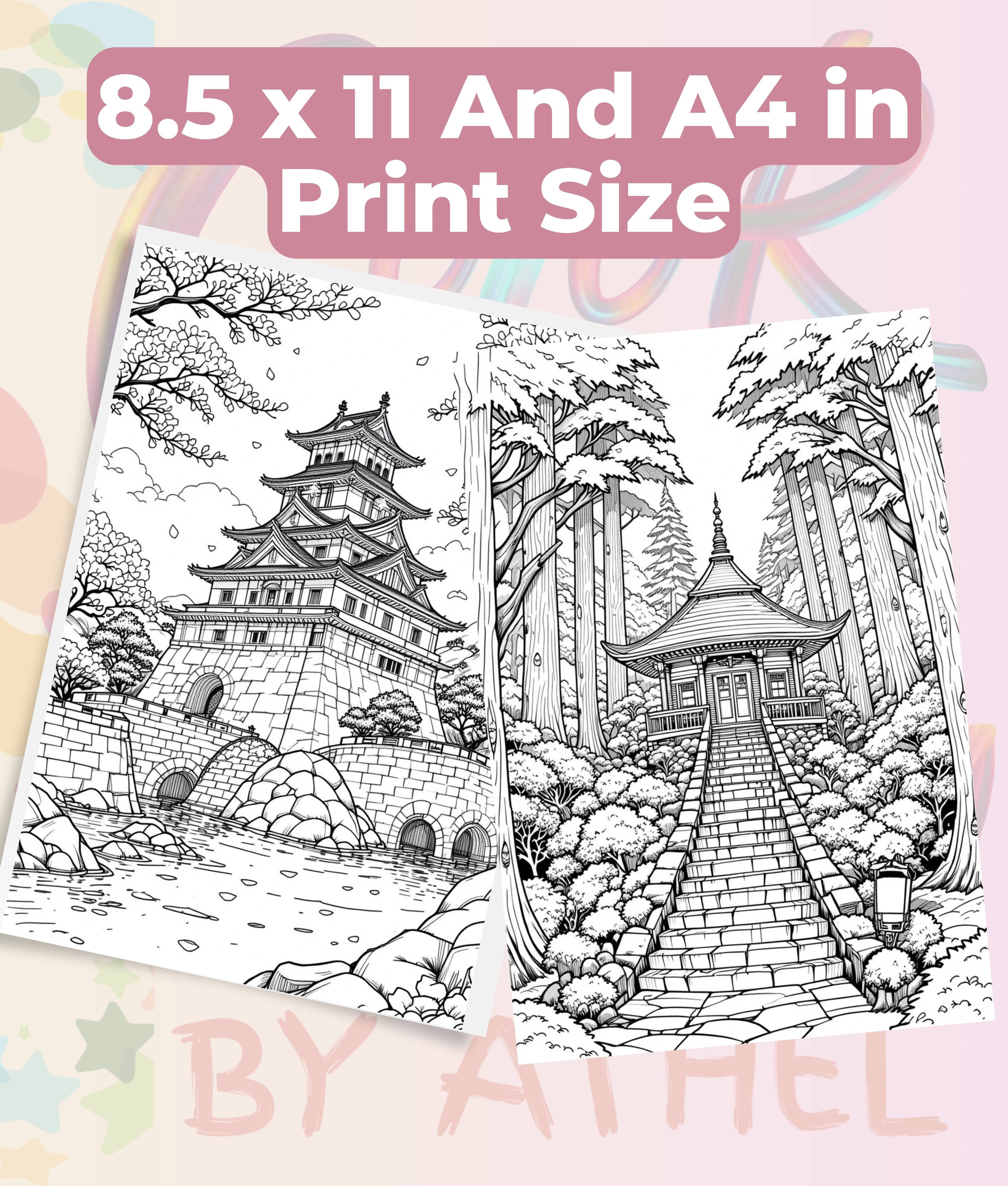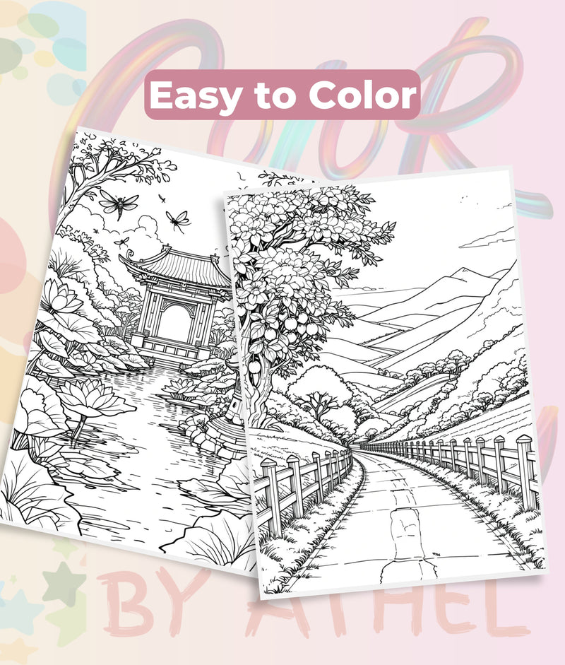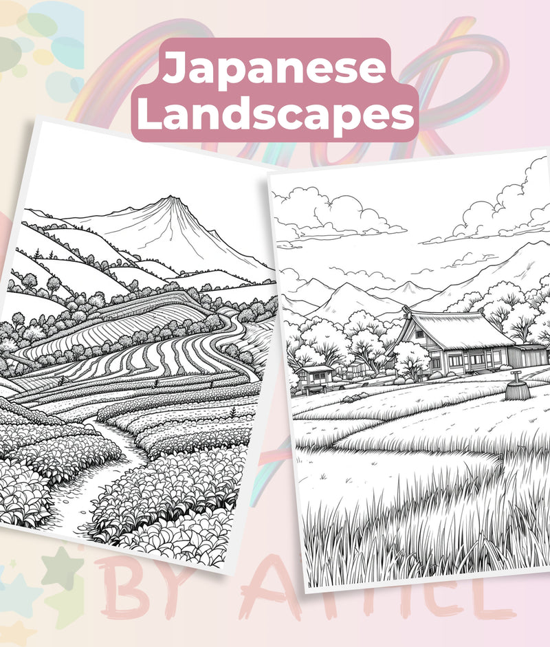 Immerse yourself in tranquility with our Japanese Landscape Coloring Book Bundle, featuring exquisite designs of serene gardens, majestic mountains, and traditional architecture. Perfect for relaxation and creative expression, this bundle is ideal for art enthusiasts and those seeking a peaceful escape.