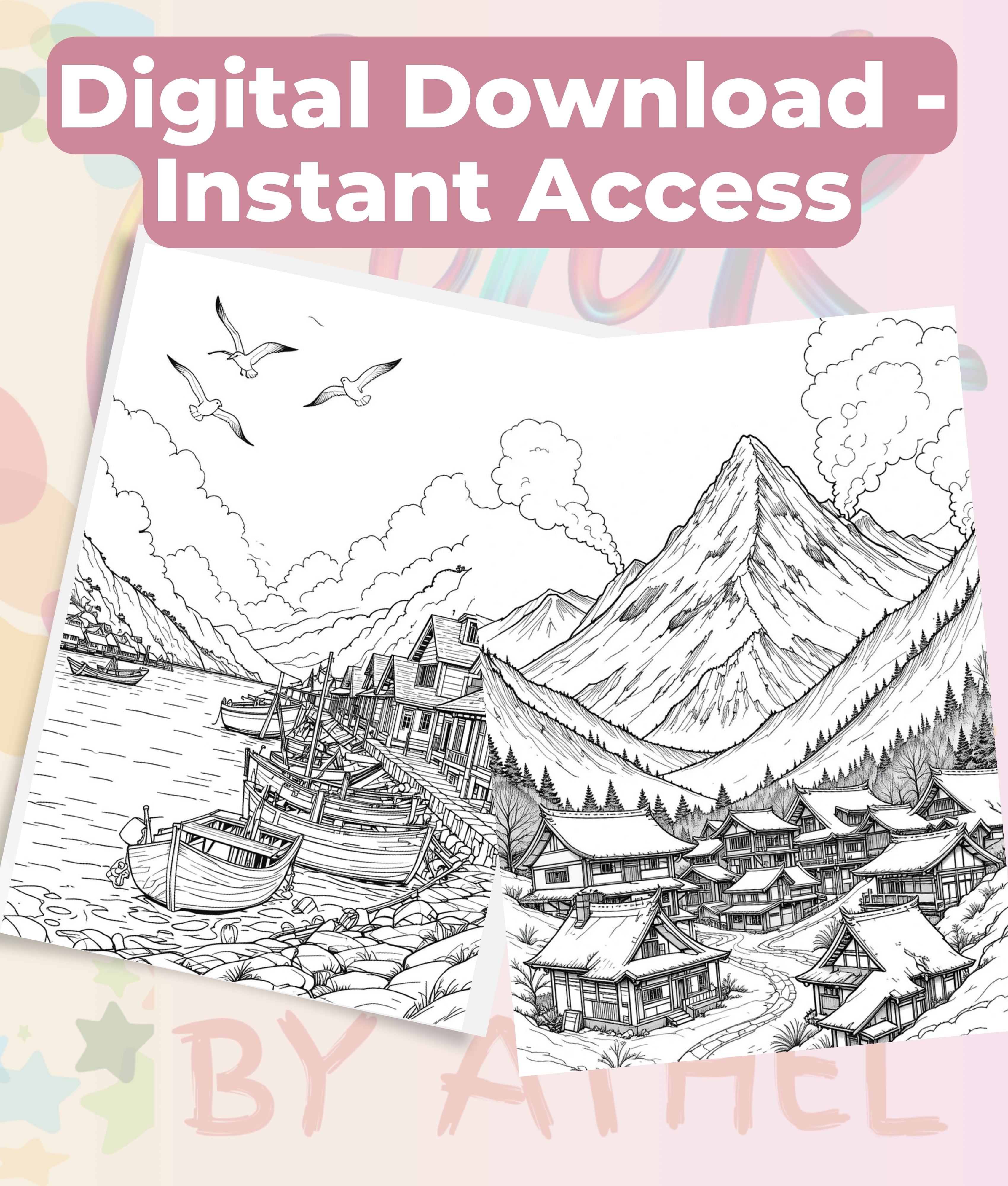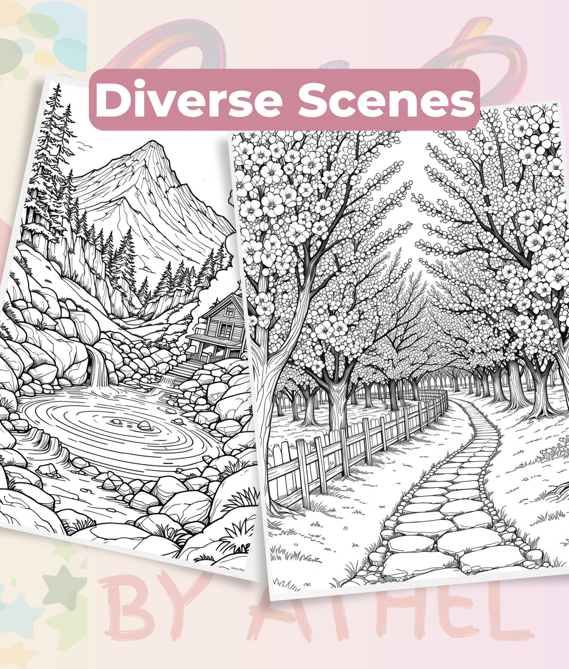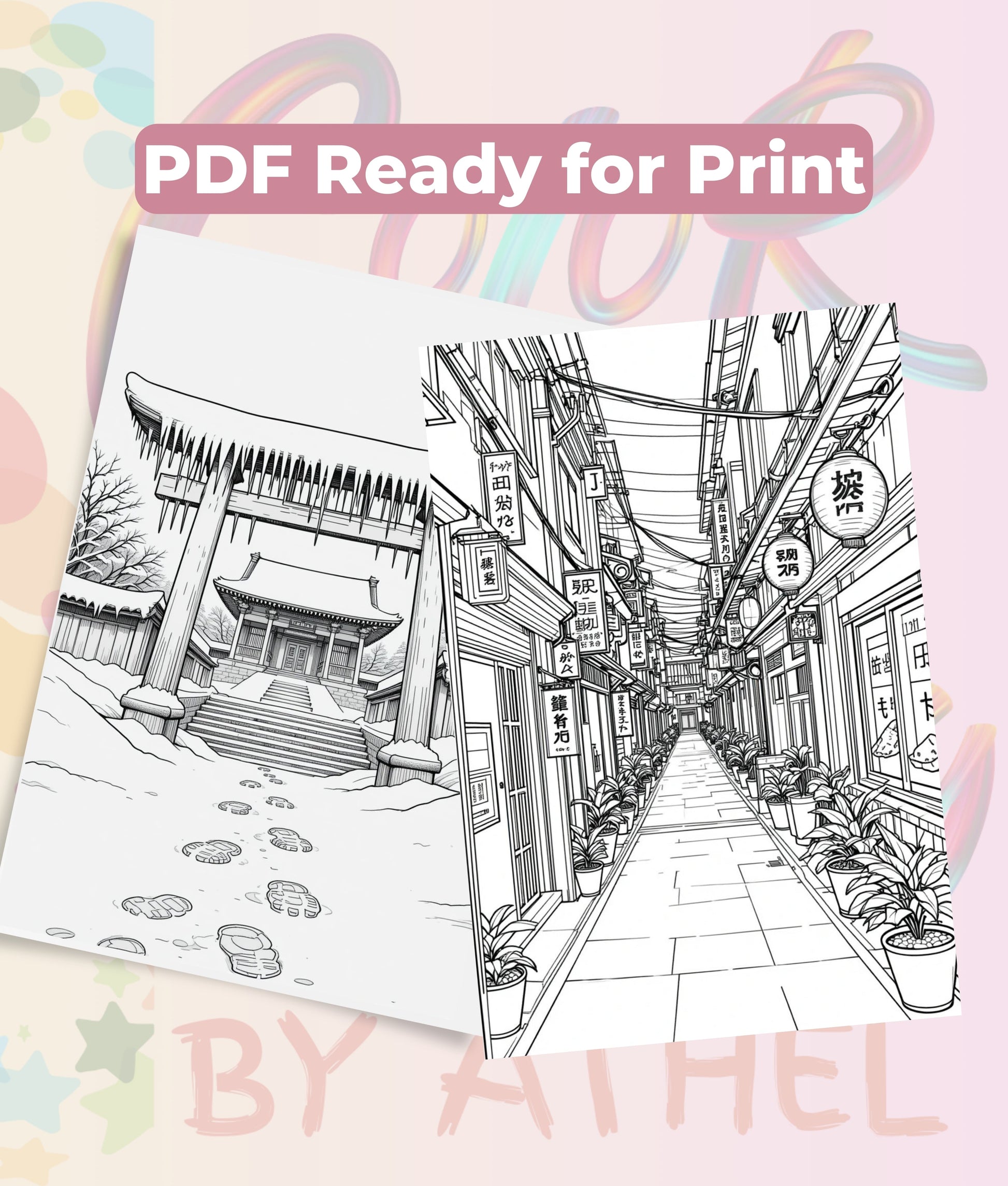 Immerse yourself in tranquility with our Japanese Landscape Coloring Book Bundle, featuring exquisite designs of serene gardens, majestic mountains, and traditional architecture. Perfect for relaxation and creative expression, this bundle is ideal for art enthusiasts and those seeking a peaceful escape.