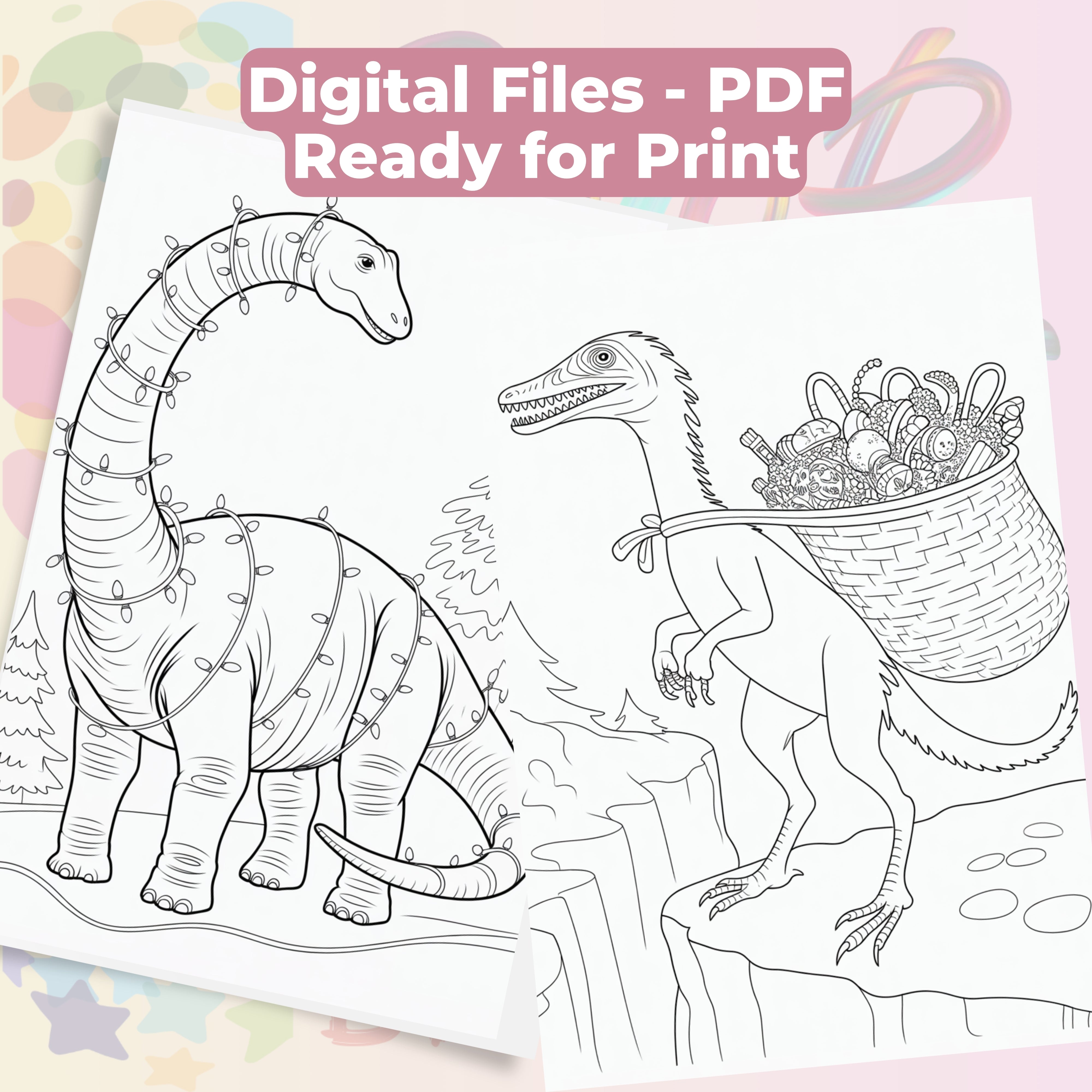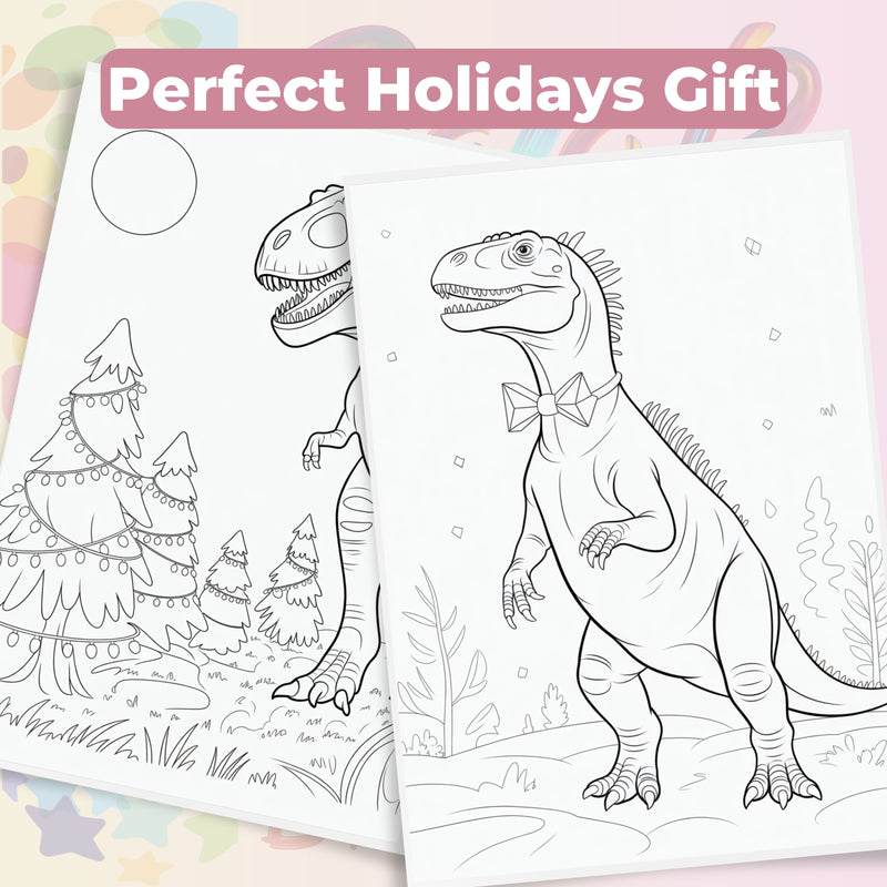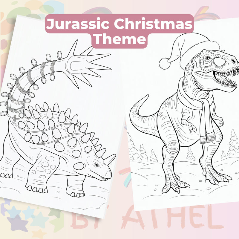 Unleash festive creativity with the Jurassic Christmas Coloring Books Bundle, featuring delightful dinosaur-themed holiday designs perfect for all ages. Dive into a prehistoric winter wonderland and bring these charming creatures to life with vibrant colors. Ideal for family fun, holiday crafts, and unique gift ideas, this bundle offers hours of entertainment and joy. Perfect for dinosaur enthusiasts and holiday lovers alike, make your Christmas magical with this captivating coloring collection.