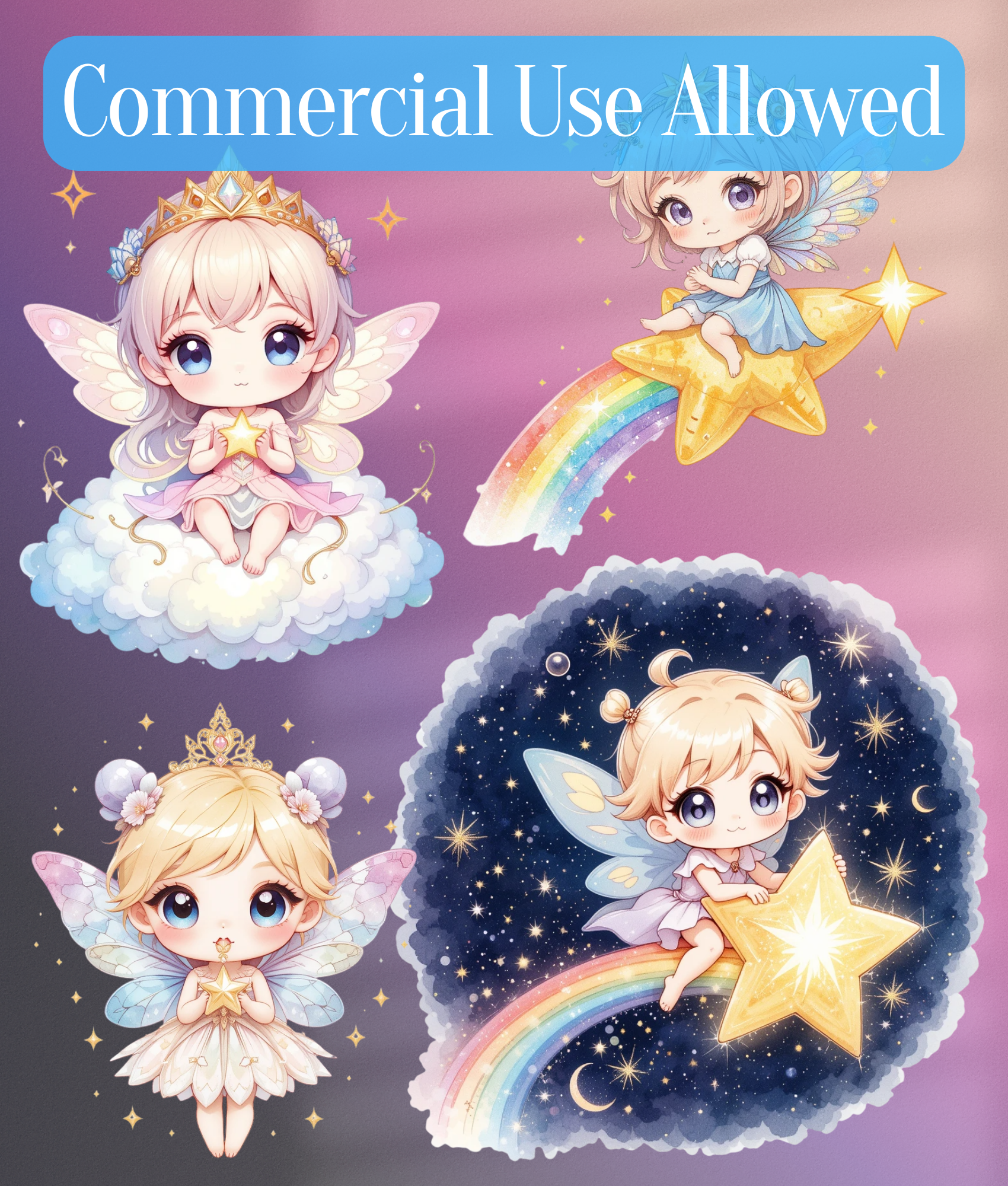 Kawaii Baby Celestial Fairy Clipart Bundle