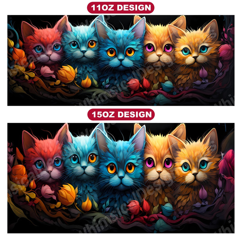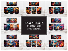 Delight in the adorableness of our Kawaii Cats digital mug wraps. These adorable designs feature cute cat illustrations and vibrant colors, capturing the charm and personality of our feline companions, making them a delightful addition to your mug collection and a perfect way to start your day with a touch of kitty-inspired whimsy and kawaii charm.