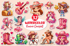 Ride with this Kawaii Cowgirl Clipart Bundle, featuring cute western girl designs, perfect for adorable cowboy crafts.