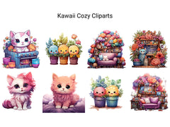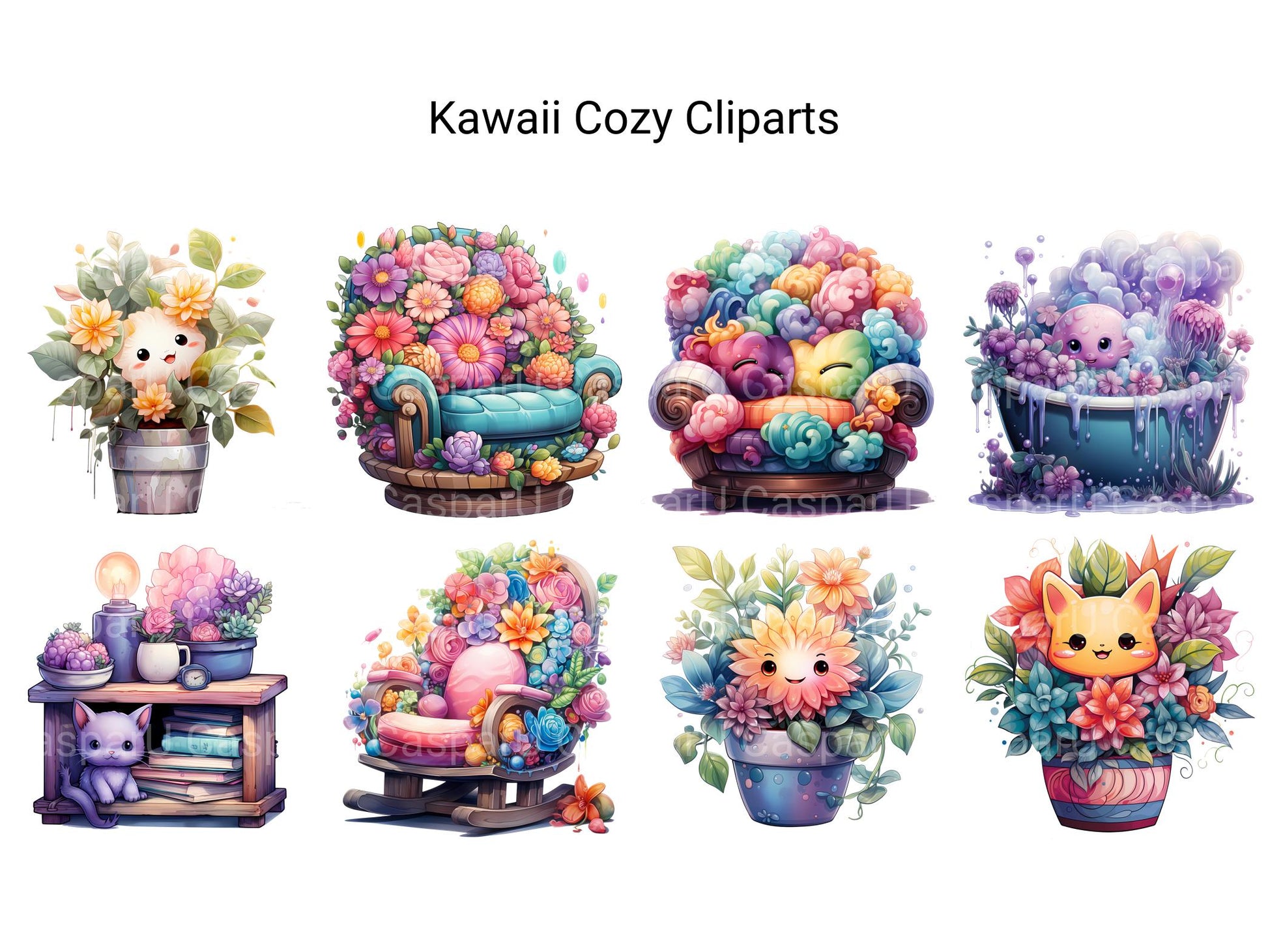 Embrace the warmth and comfort of Kawaii Cozy clip art. These digital illustrations feature cute characters in cozy settings, surrounded by blankets, pillows, and cups of cocoa, perfect for adding a sense of comfort and relaxation to your projects, whether for hygge-themed designs, winter stationery, or cozy home decor, enveloping viewers in a snug world of coziness.