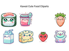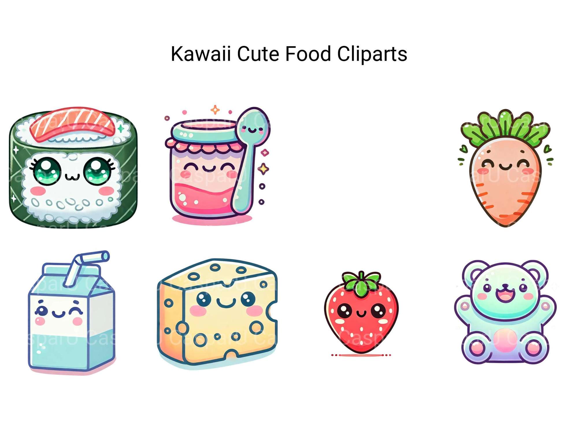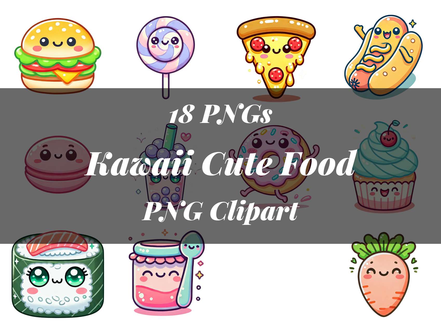 Adore your food with this Kawaii Cute Food Clipart set, featuring adorable designs, ideal for fun and cute projects.