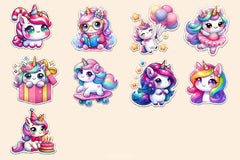 Adorable kawaii unicorn sticker designs for magical craft projects.