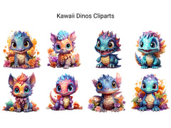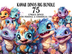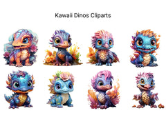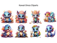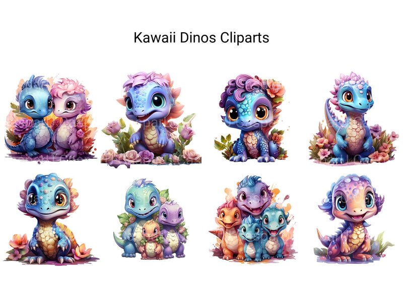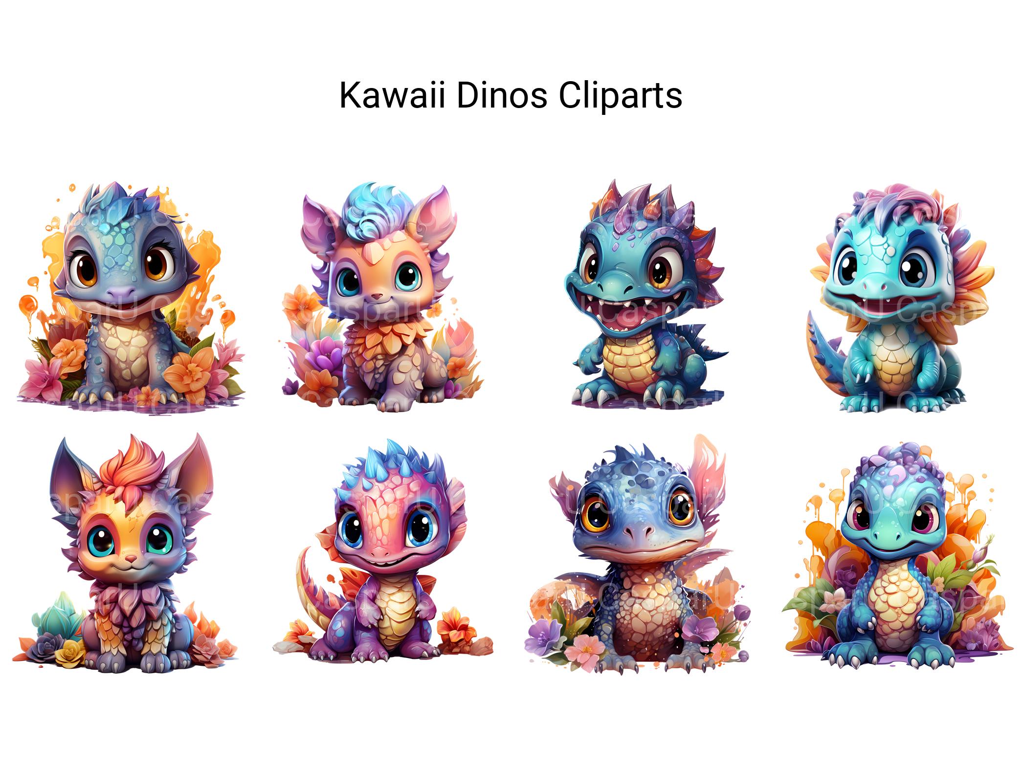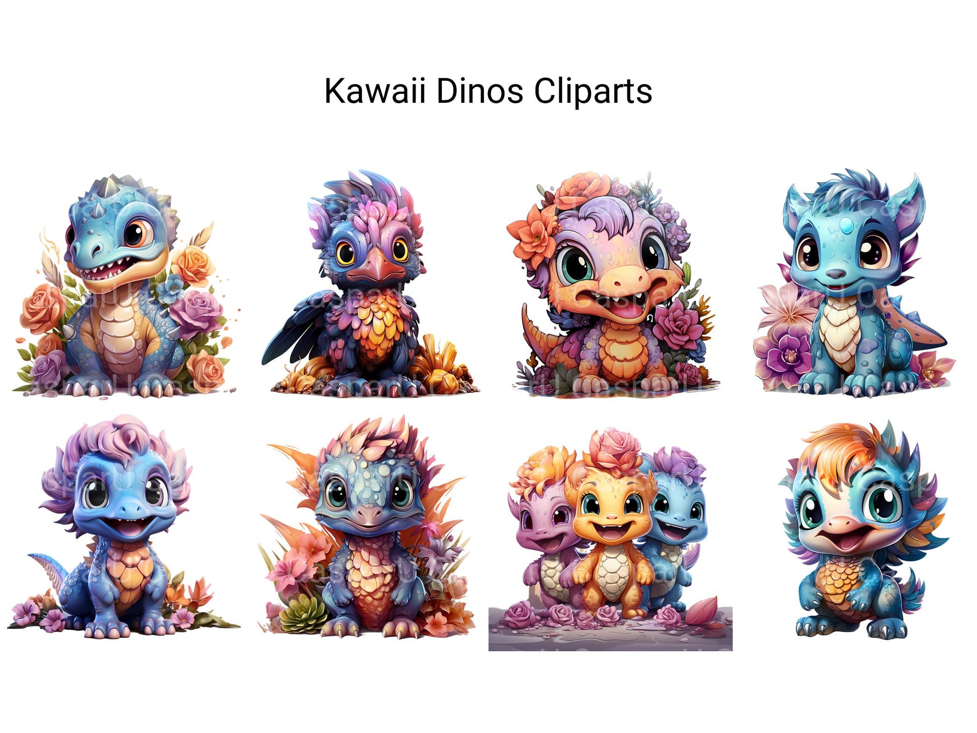 Embark on a prehistoric adventure with Kawaii Dinos clip art. These digital illustrations feature adorable dinosaurs with big eyes and friendly smiles, perfect for adding a touch of whimsy and fun to your projects, whether for children's books, party invitations, or playful designs, bringing laughter and joy with their dino-mite charm.