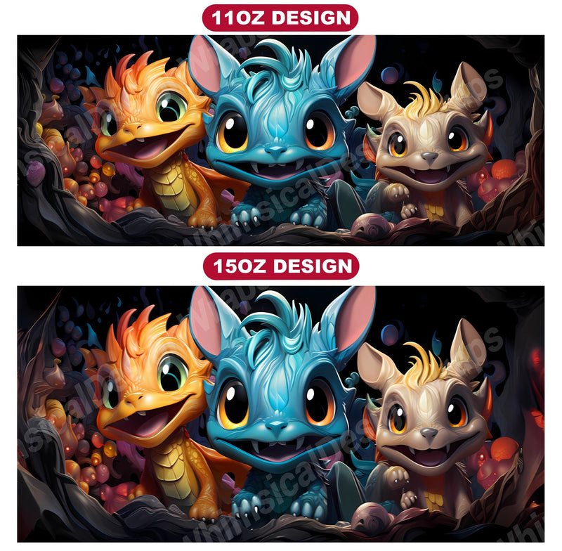 Immerse yourself in the world of fantasy with our Kawaii Dragons digital mug wraps. These charming designs showcase lovable dragon characters and playful patterns, evoking the enchantment and wonder of mythical realms, making them a delightful addition to your mug collection and a perfect way to infuse your mornings with the magic of kawaii culture.