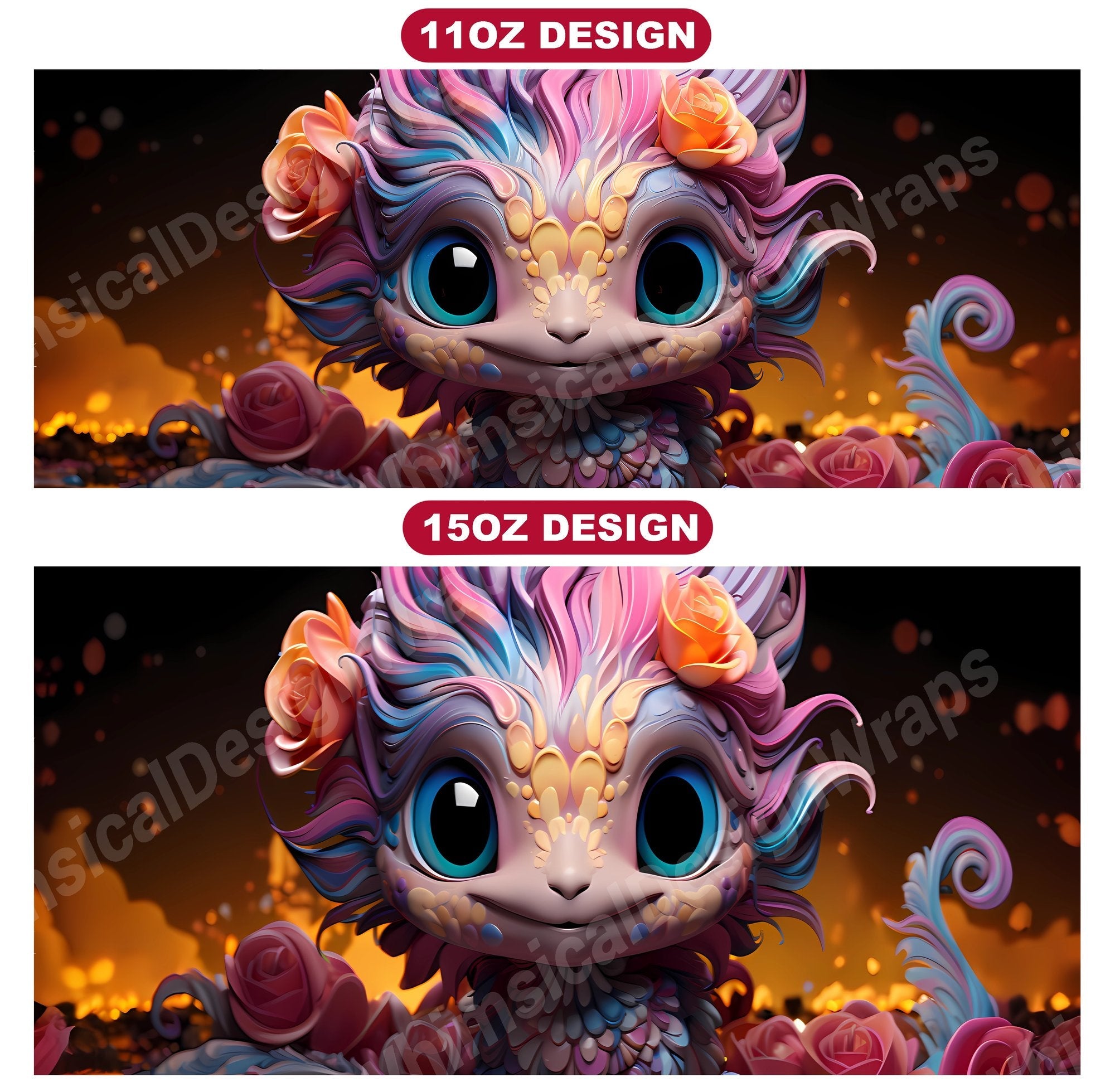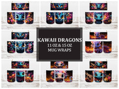 Embark on a magical journey with our Kawaii Dragons digital mug wraps. These charming designs showcase lovable dragon characters and pastel hues, evoking the enchantment and wonder of mythical realms, making them a delightful addition to your mug collection and a perfect way to infuse your mornings with the sweetness and joy of kawaii culture.