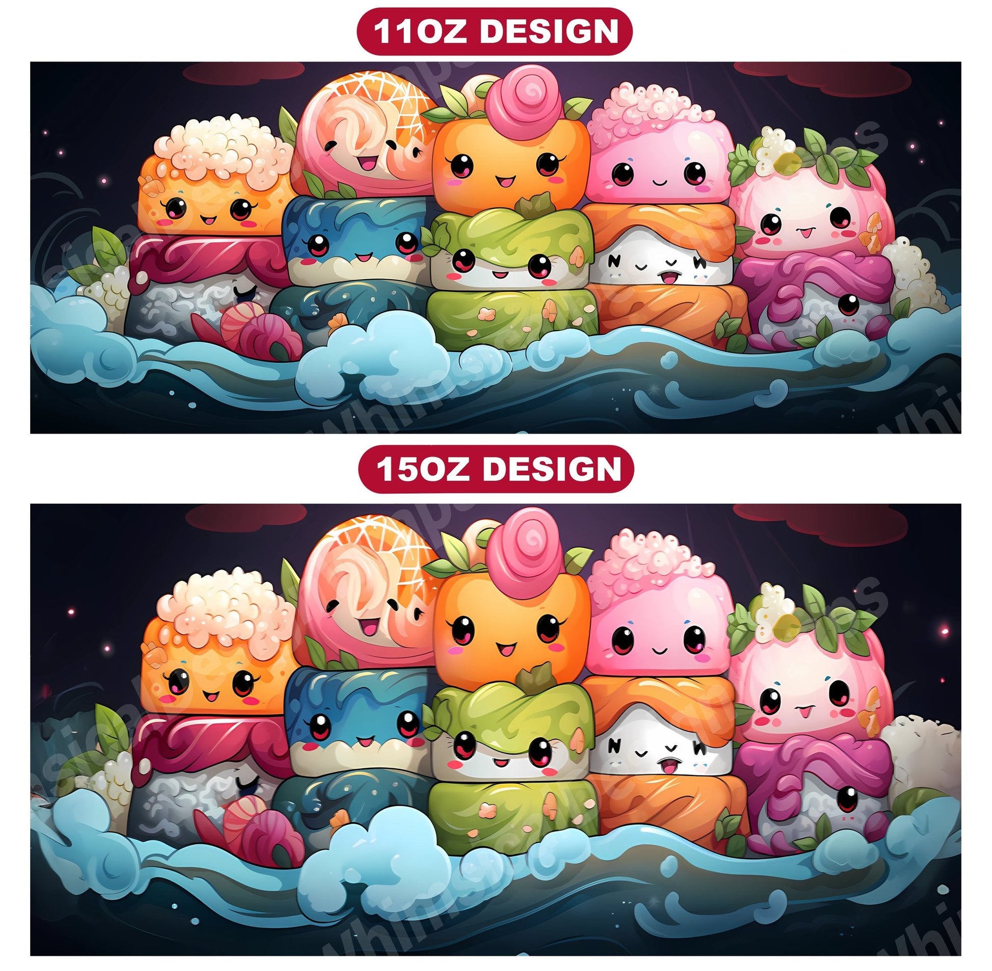 Surround yourself with the cuteness of food with our Kawaii Food digital mug wraps. These delightful designs feature cute food illustrations and vibrant colors, evoking the happiness and joy of tasty treats, making them a charming addition to your mug collection and a perfect way to infuse your mornings with the sweetness and warmth of kawaii culture.