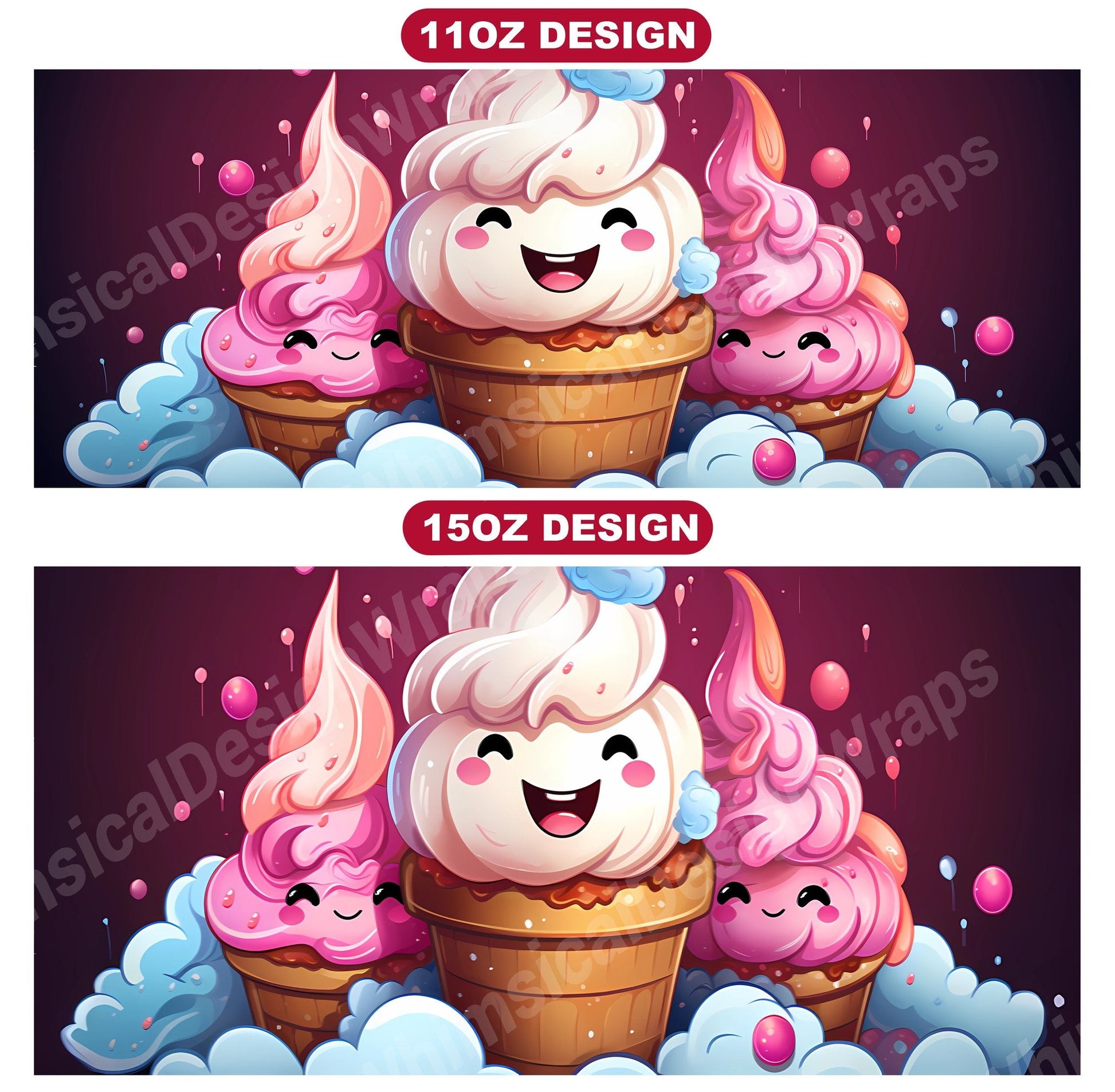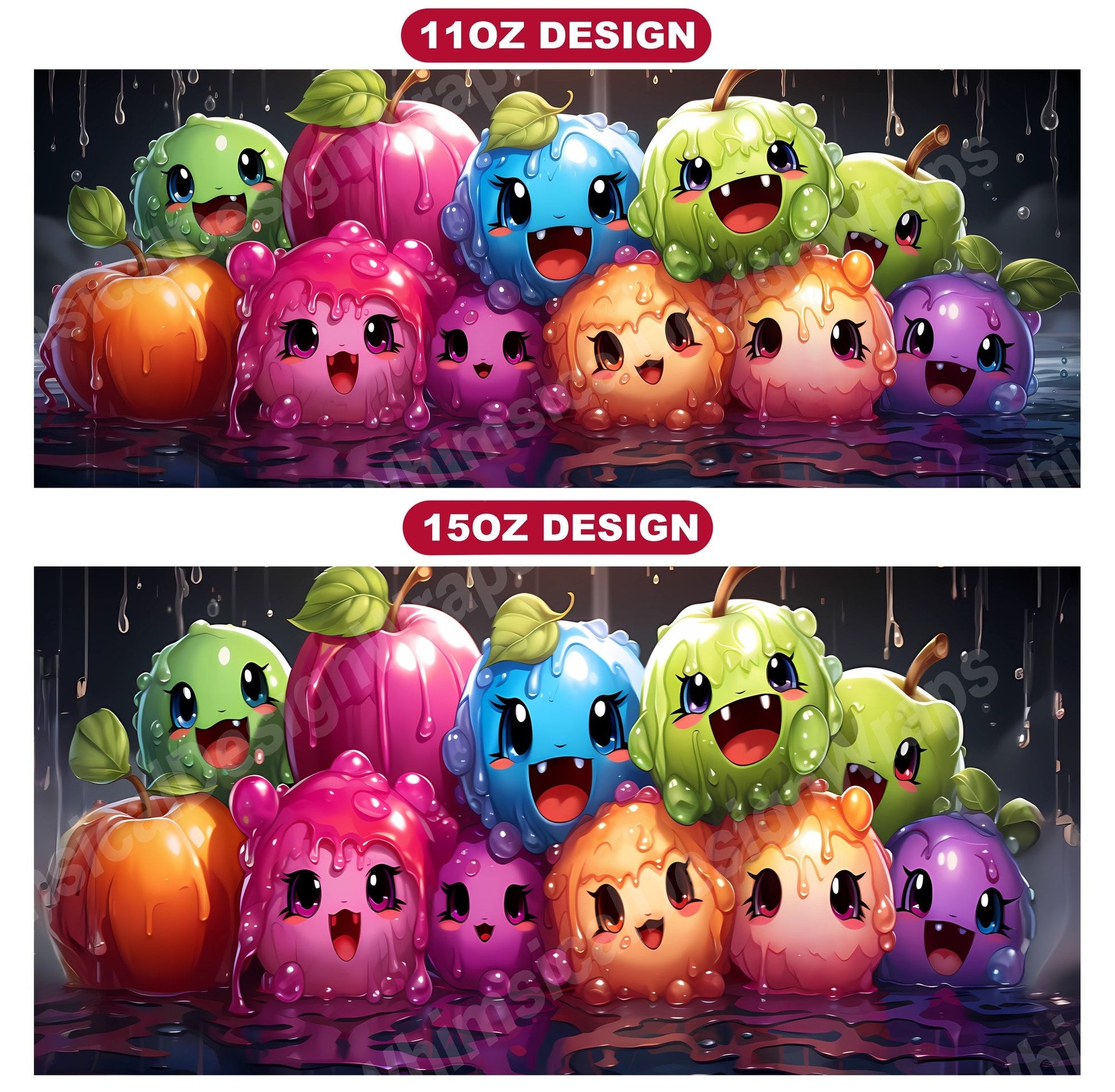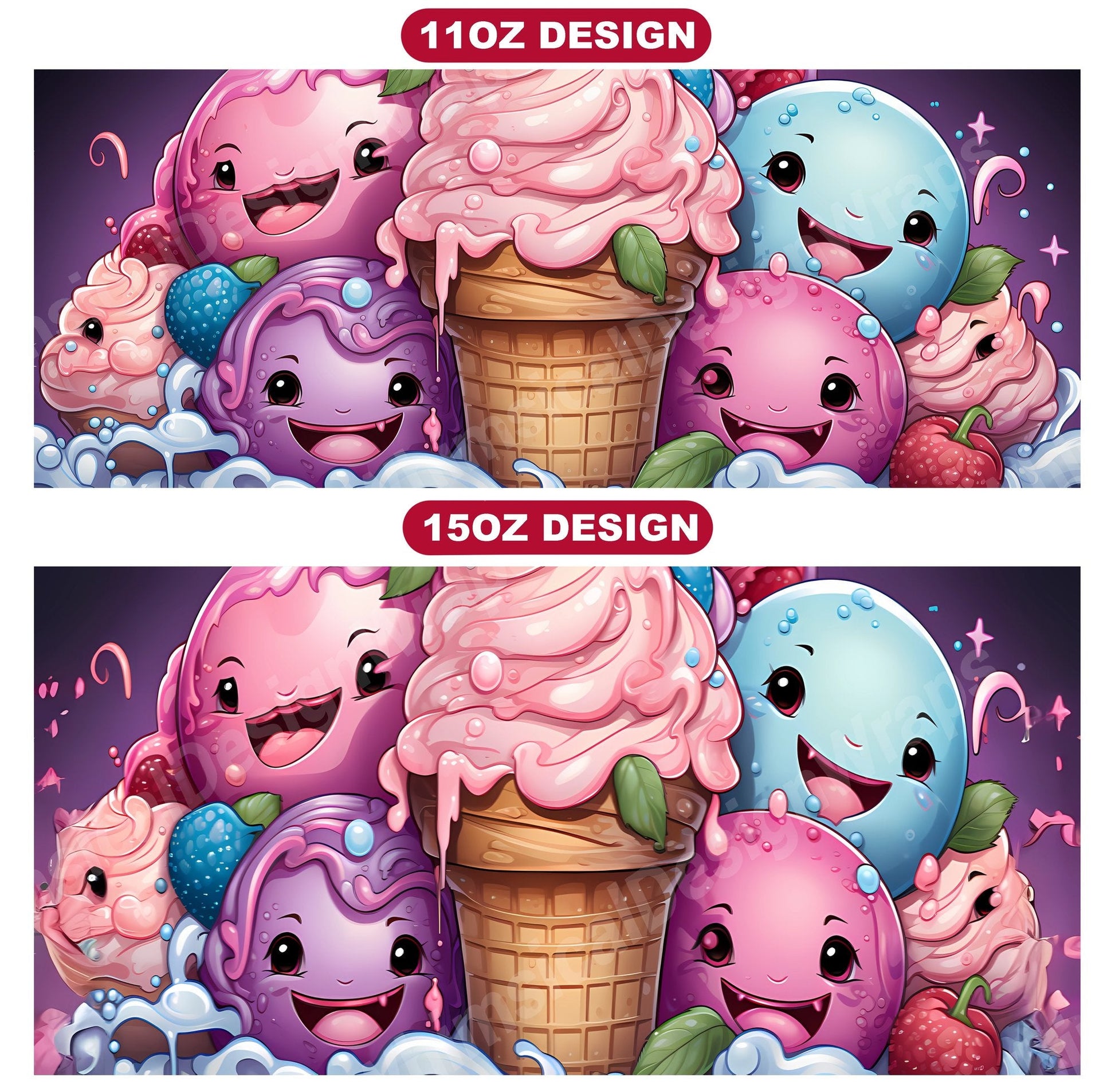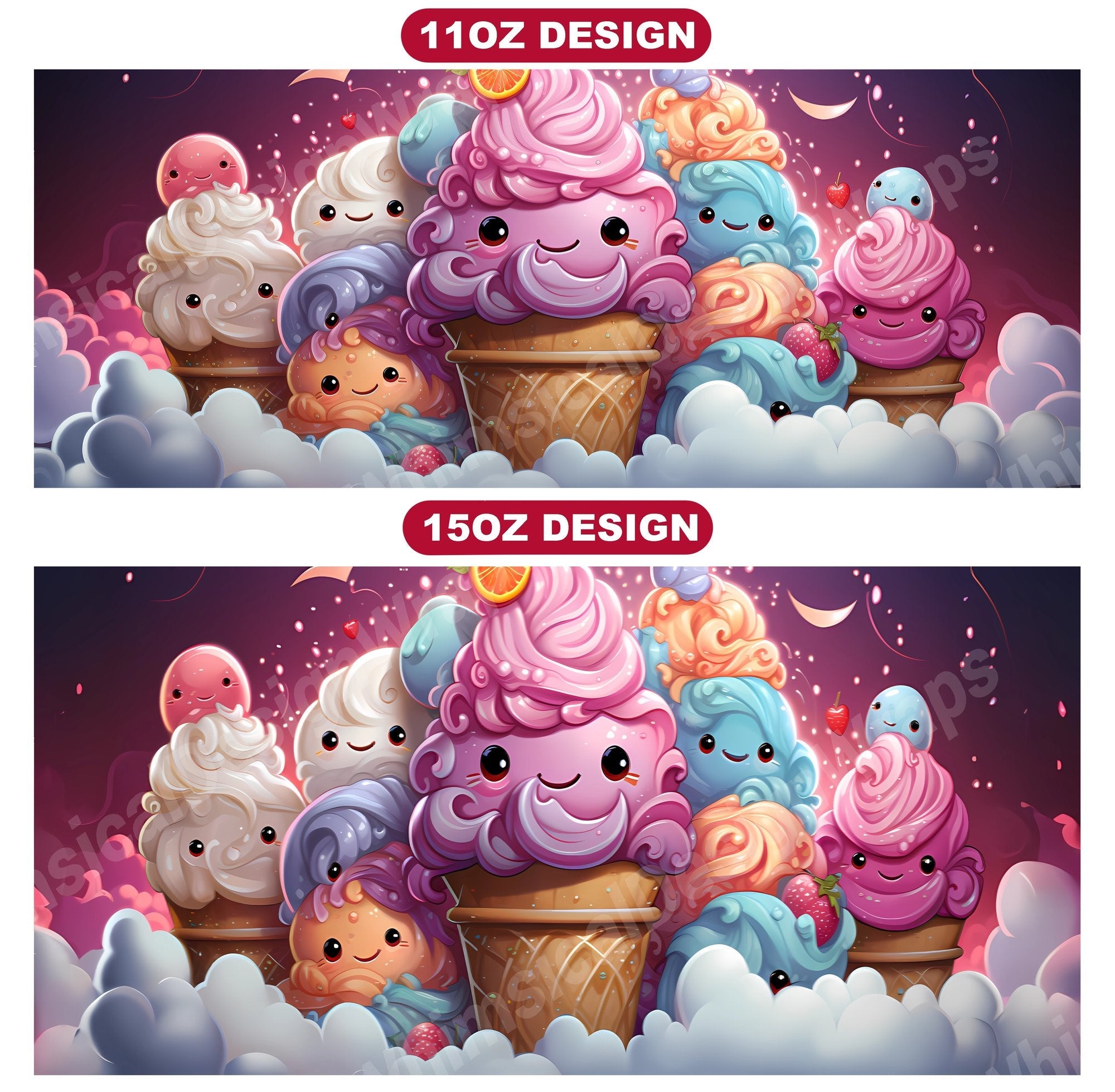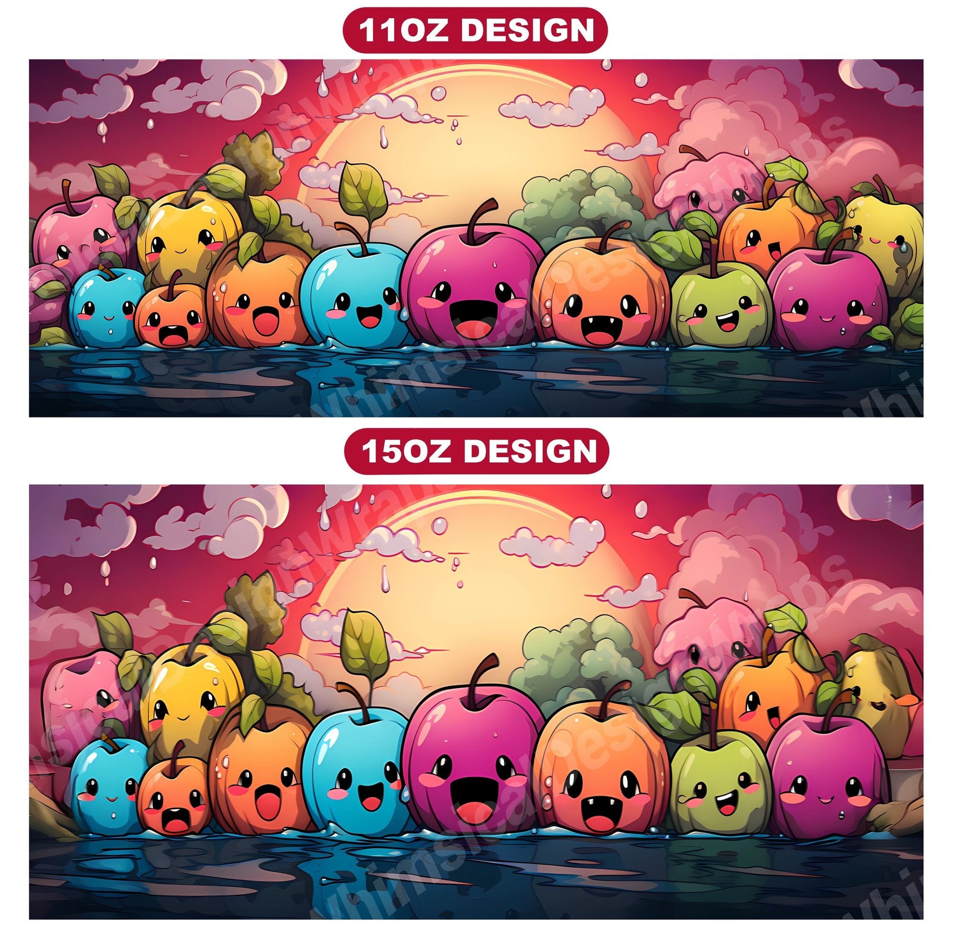 Indulge in the sweetness of our Kawaii Food digital mug wraps. These charming designs showcase lovable food characters and vibrant colors, evoking the happiness and joy of tasty treats, making them a delightful addition to your mug collection and a perfect way to infuse your mornings with the sweetness and warmth of kawaii culture.