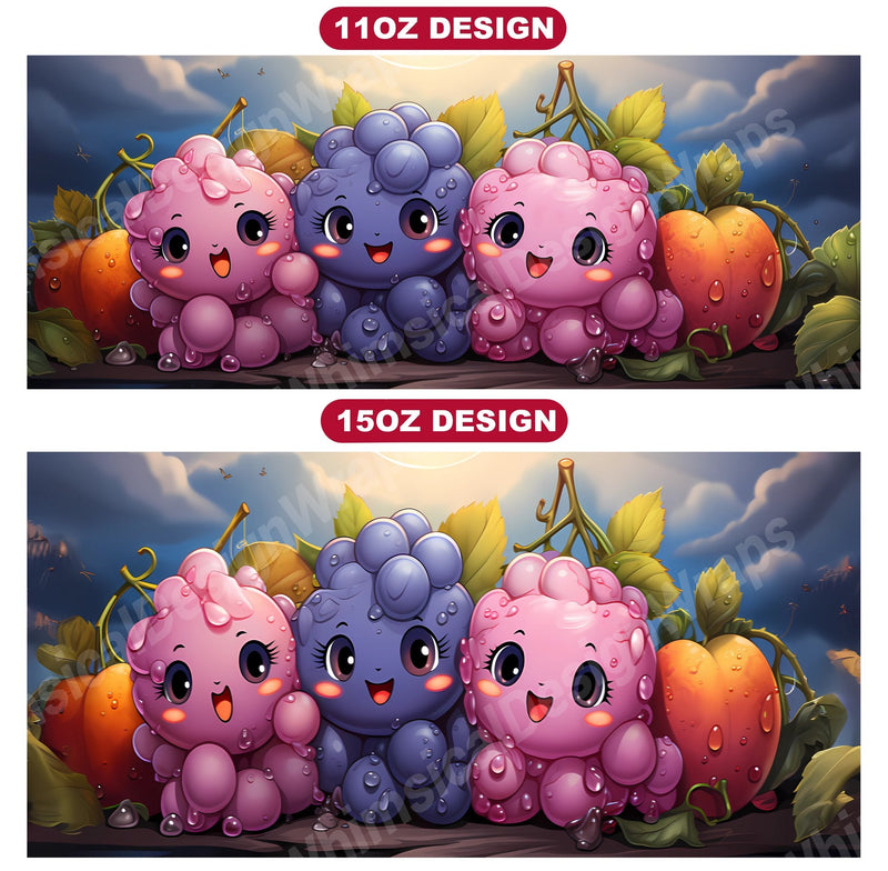 Surround yourself with the adorable charm of spring with our Kawaii Fruits digital mug wraps. These delightful designs feature cute fruit illustrations and cheerful motifs, evoking the happiness and positivity of the season, making them a heartwarming addition to your mug collection and a perfect way to start your day with a smile and a sprinkle of kawaii magic.
