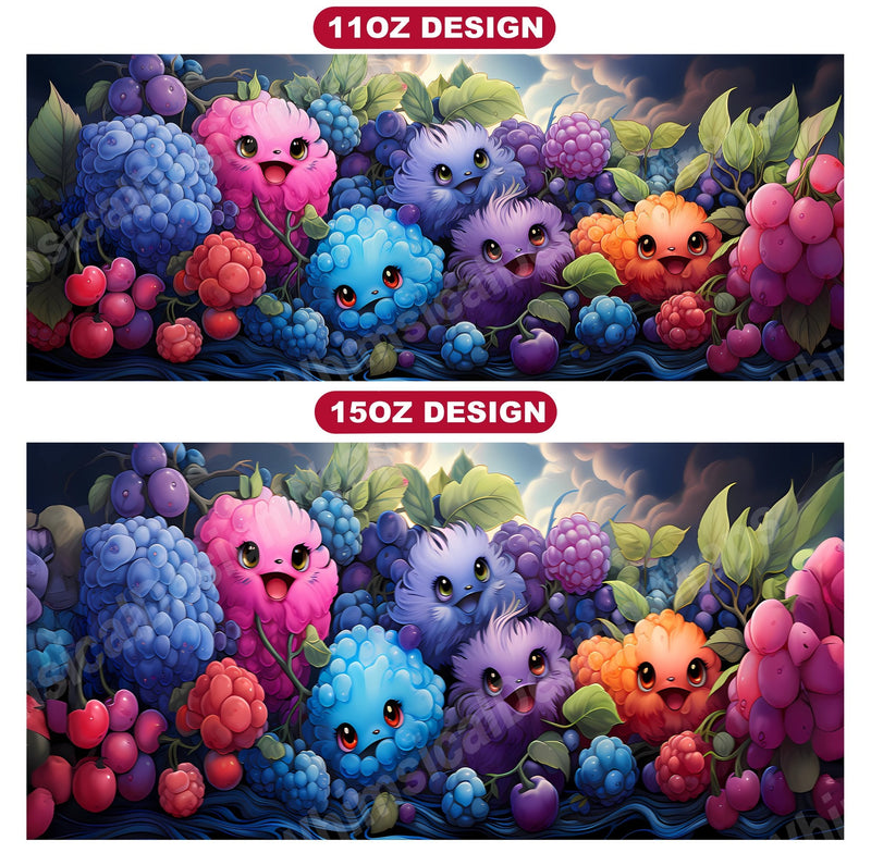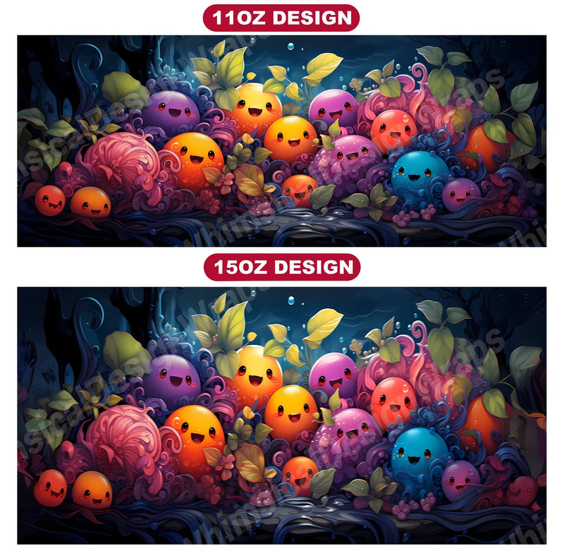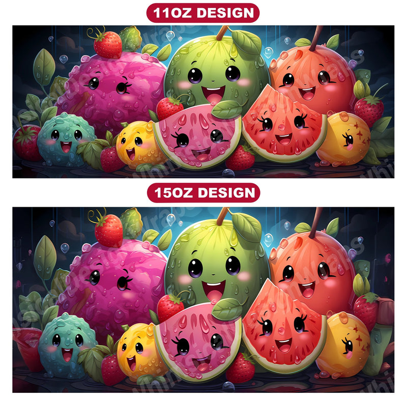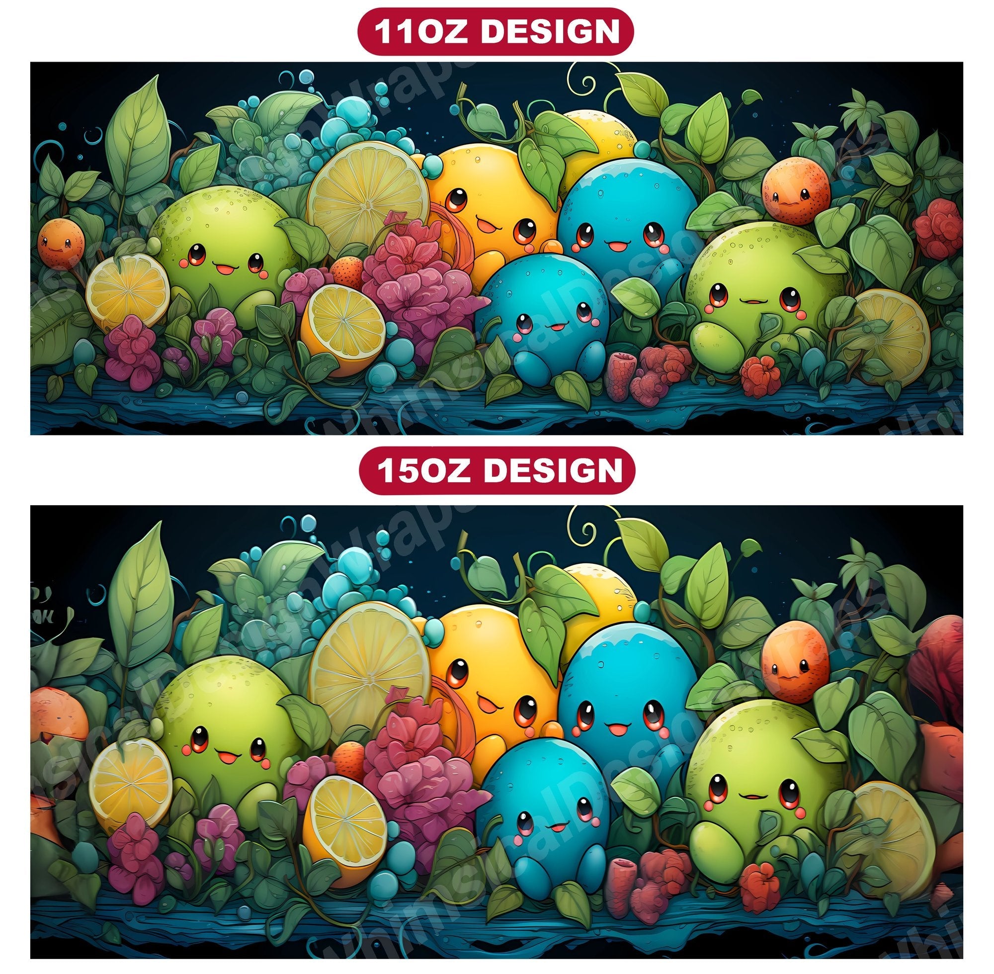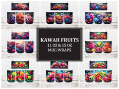 Step into a fruity paradise with our Kawaii Fruits digital mug wraps. These whimsical designs feature adorable fruit illustrations and vibrant colors, capturing the essence of springtime renewal in a celebration of fruity fun, making them a delightful addition to your mug collection and a perfect way to start your day with a burst of colorful charm.