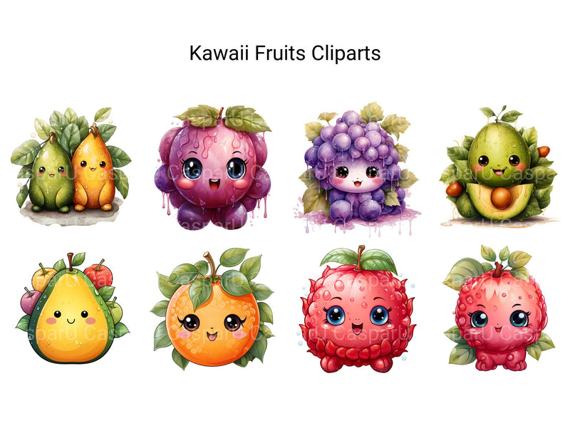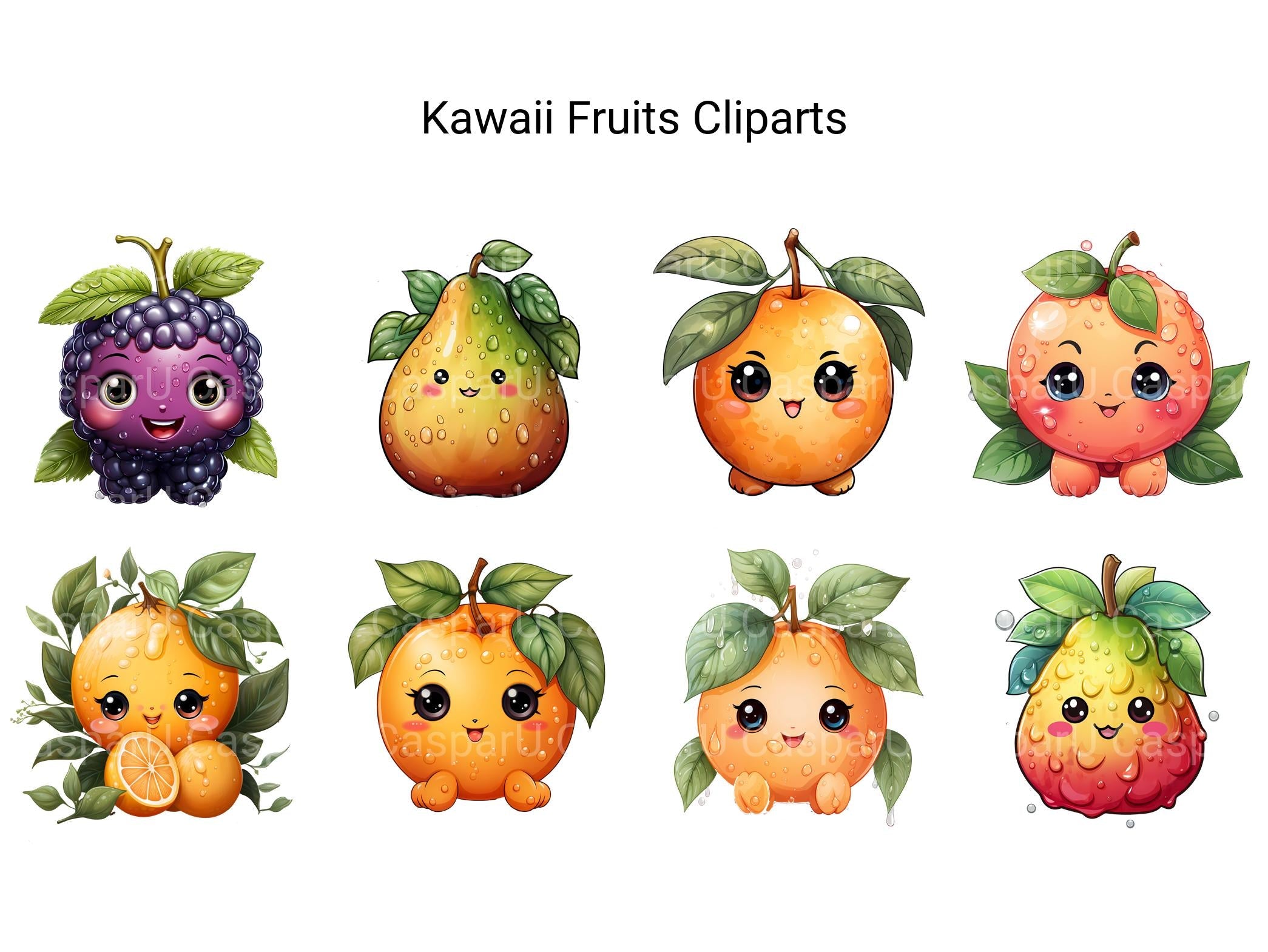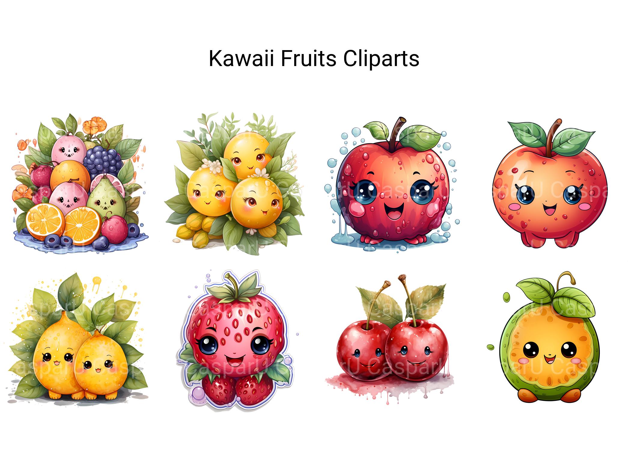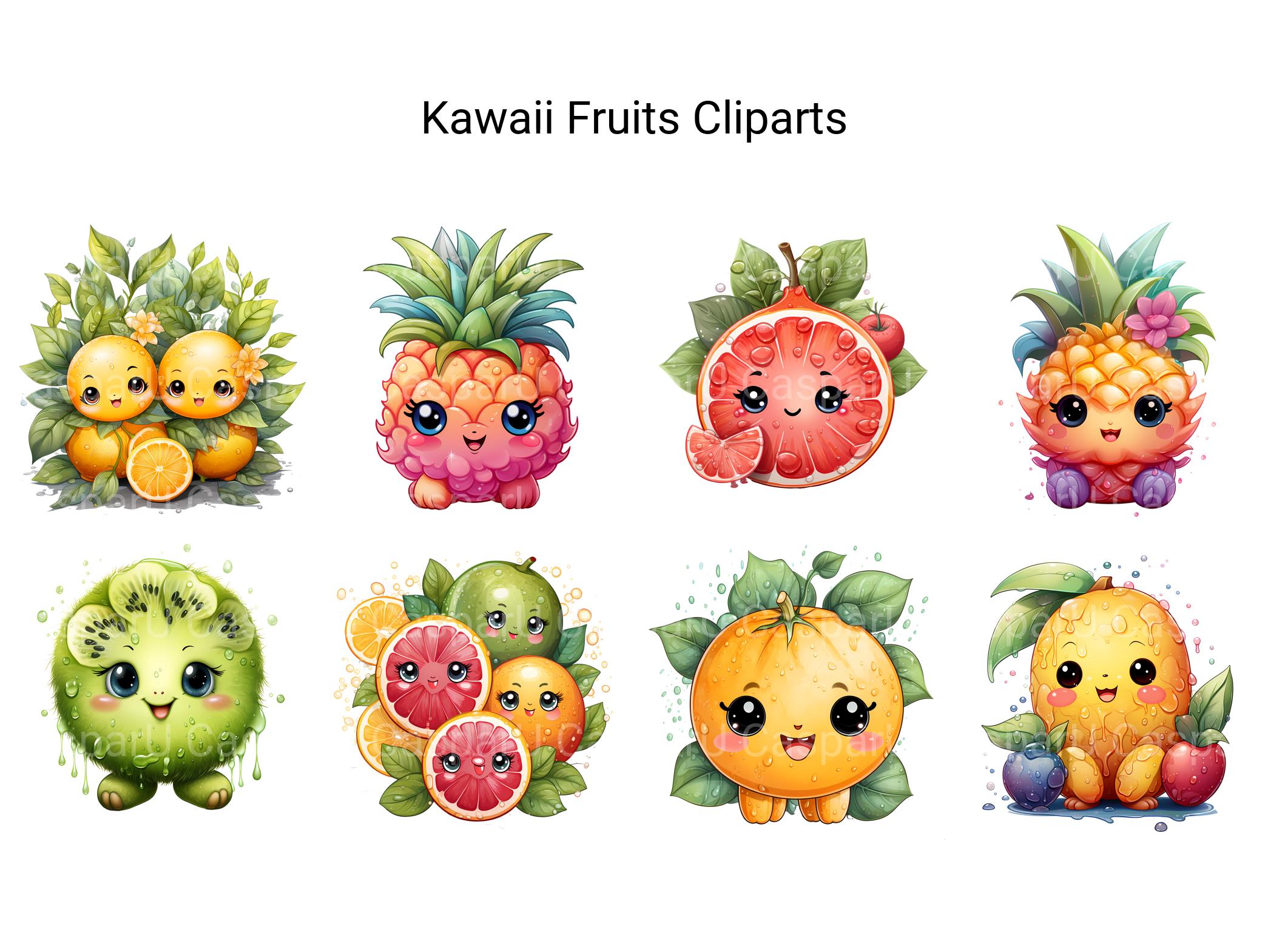 Savor the sweetness of Kawaii Fruits clip art. These digital illustrations feature adorable fruit characters with cheerful faces and bright colors, perfect for adding a touch of fruity fun and healthy charm to your projects, whether for kitchen decor, nutrition guides, or fruity-themed designs, enticing viewers with their juicy and irresistible appeal.