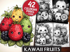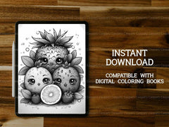 Indulge in a fruity fiesta with our digital coloring book showcasing Kawaii fruits! From smiling apples to giggling grapes, each page is bursting with sweetness and joy. Let your creativity ripen as you add your own colors to these delightful designs, capturing the juicy goodness and adorable appeal of Kawaii fruits in every stroke.