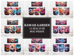Surround yourself with the whimsy of a botanical paradise with our Kawaii Garden digital mug wraps. These adorable designs feature cute garden-themed illustrations and pastel hues, evoking the serenity and joy of a picturesque garden, making them a delightful addition to your mug collection and a perfect way to start your day with a sprinkle of nature-inspired cuteness.