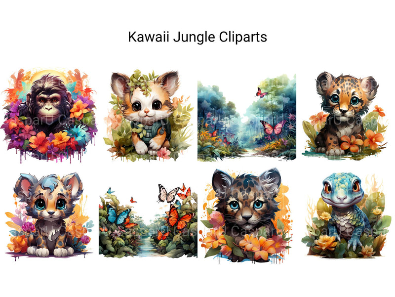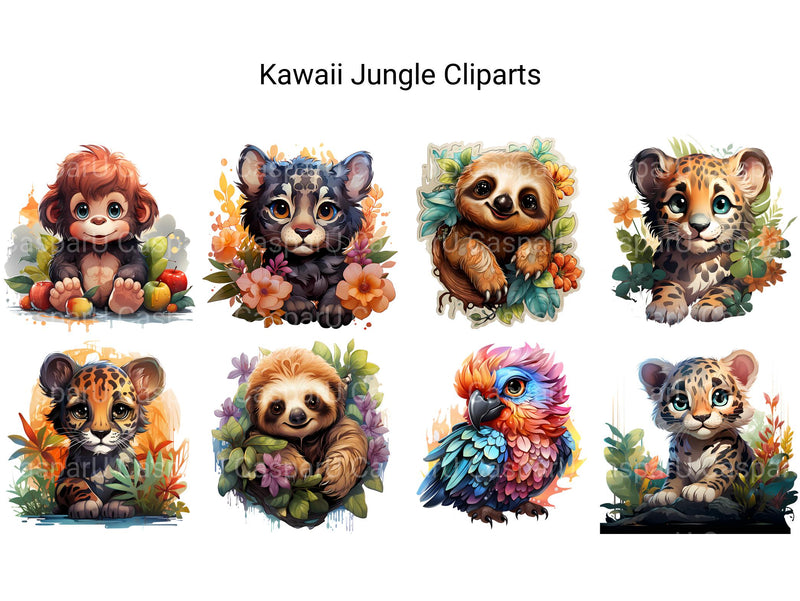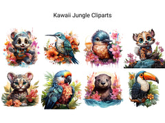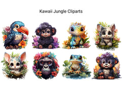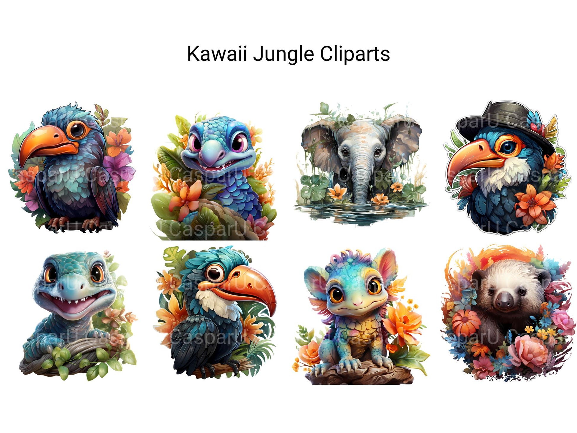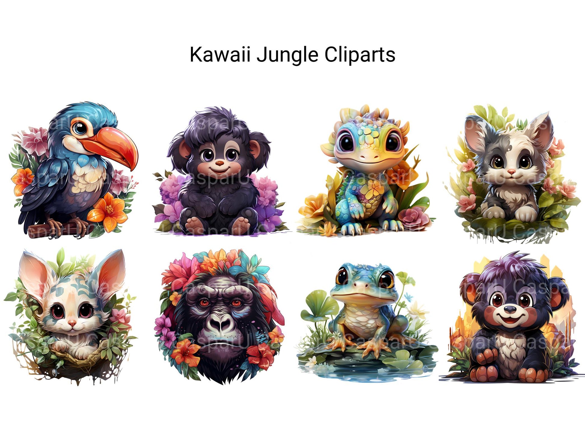 Embark on a wild adventure with Kawaii Jungle clip art. These digital illustrations feature adorable jungle animals, lush vegetation, and playful scenes, perfect for adding a sense of tropical fun and exploration to your projects, whether for children's books, jungle-themed parties, or adventurous designs, inviting viewers to journey into the heart of the jungle.