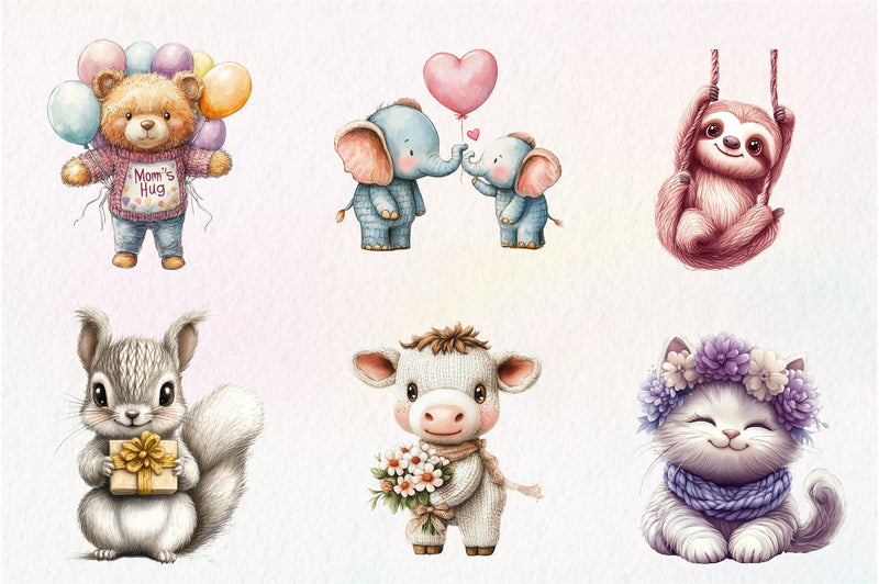 Kawaii Knitted Animals Mother's Day Clipart Bundle