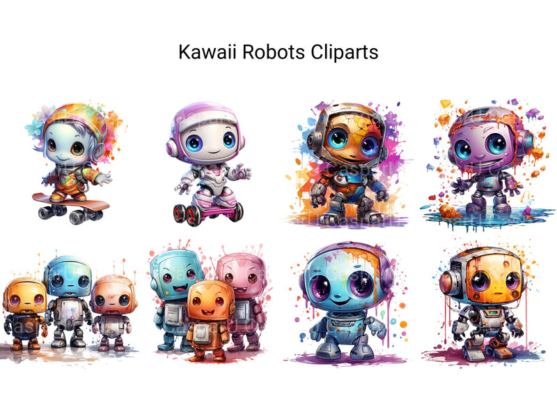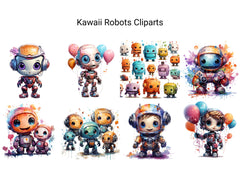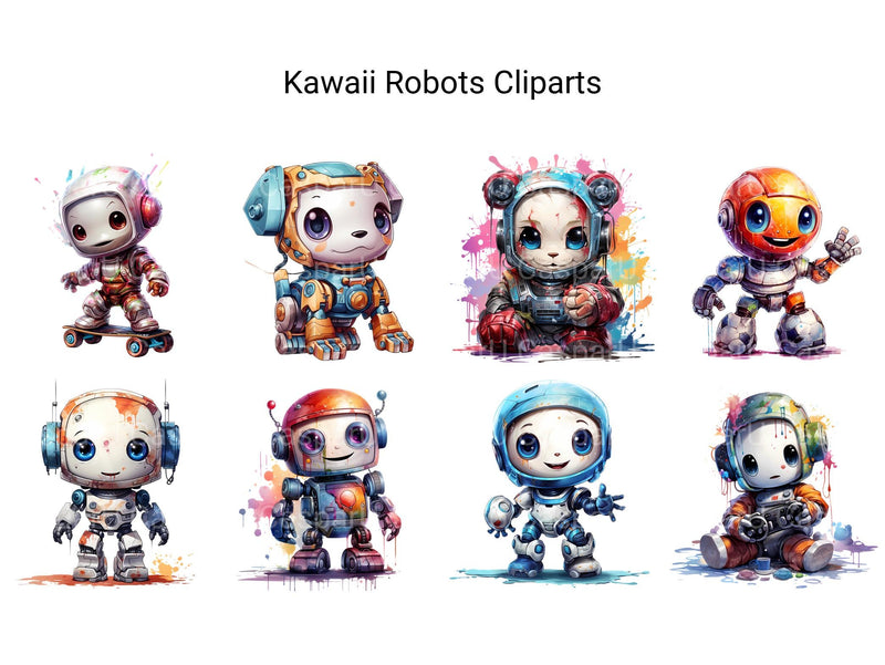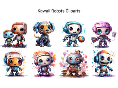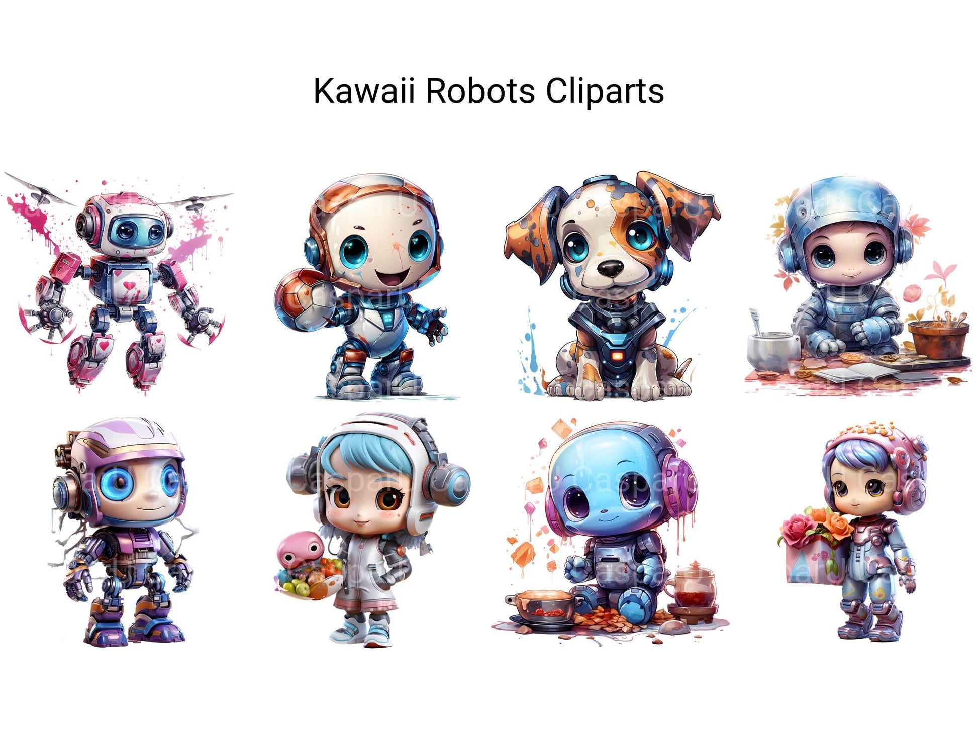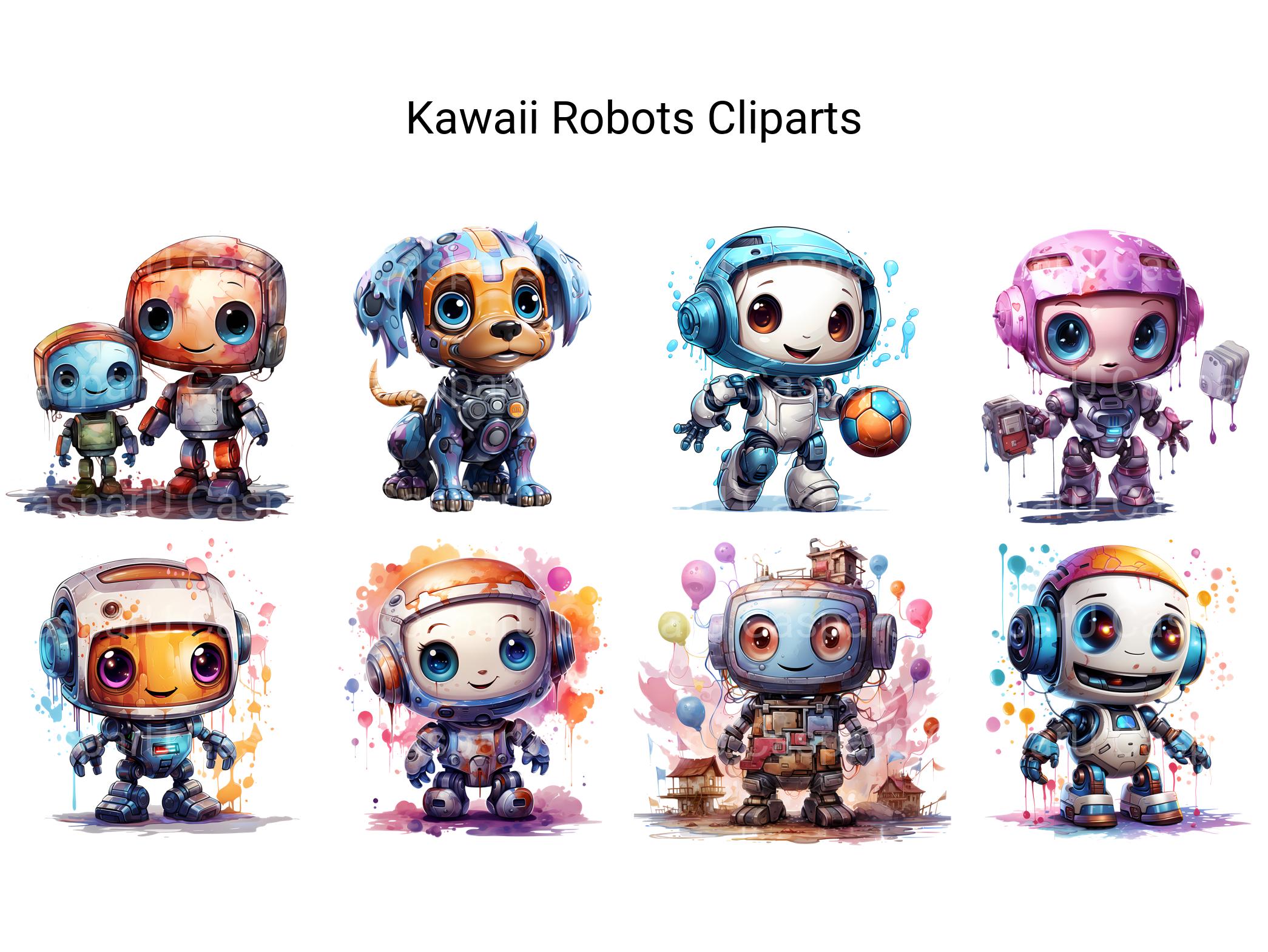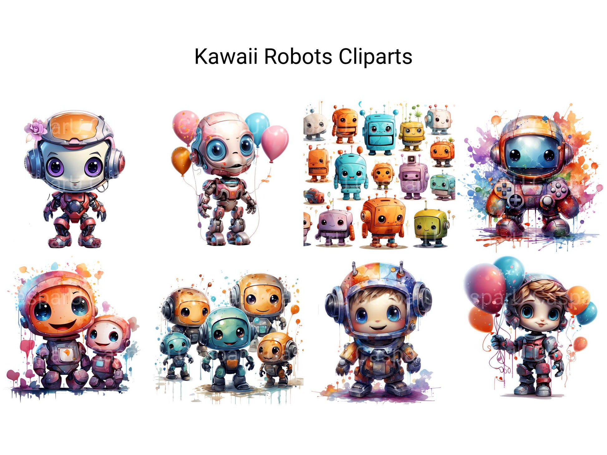Enter the futuristic world of Kawaii Robots clip art. These digital illustrations showcase cute and colorful robots with friendly faces and futuristic designs, perfect for adding a touch of techno-charm and sci-fi fun to your projects, whether for robotics clubs, STEM education materials, or futuristic-themed designs, sparking imagination with their robotic cuteness.