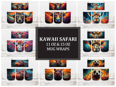 Explore the wild side of cuteness with our Kawaii Safari digital mug wraps. These charming designs feature adorable safari animals and playful motifs, capturing the whimsical spirit of the savannah, making them a delightful addition to your mug collection and a perfect way to start your day with a touch of adventure and kawaii charm.