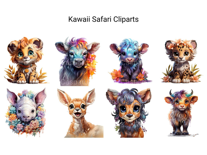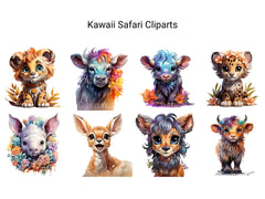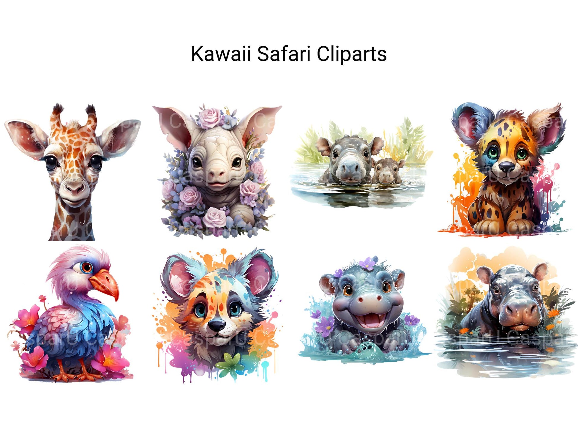 Embark on a charming adventure with Kawaii Safari clip art. These digital illustrations feature adorable safari animals, lush vegetation, and playful scenes, perfect for adding a touch of whimsy and exploration to your projects, whether for children's books, safari-themed parties, or adventurous designs, inviting viewers to journey through the wild with adorable companions.