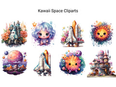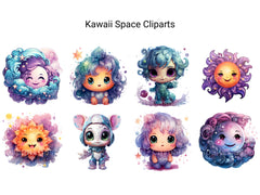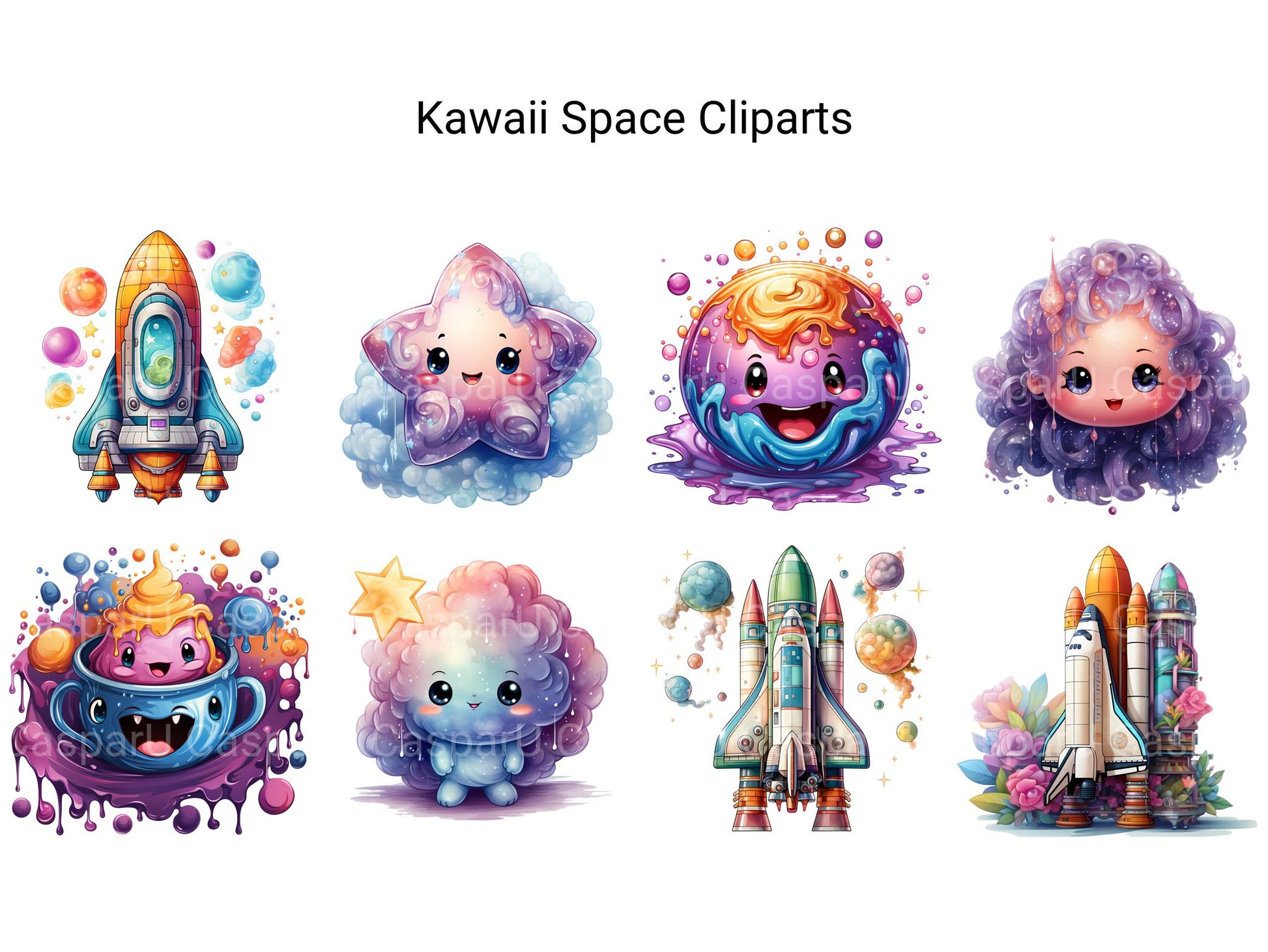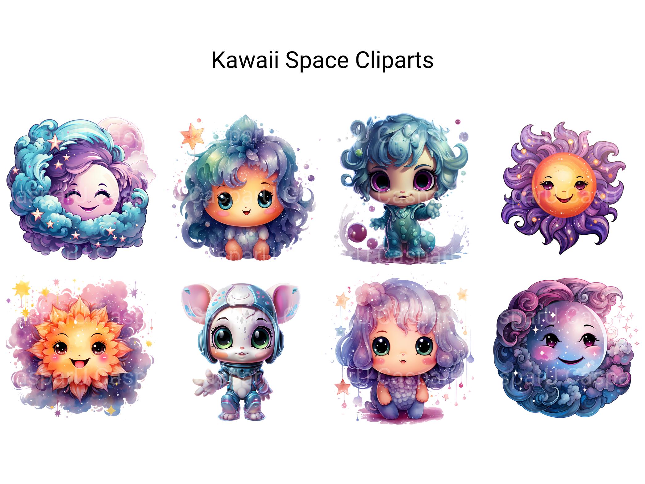 Explore the adorable cosmos with Kawaii Space clip art. These digital illustrations showcase cute astronauts, colorful planets, and cosmic scenes, perfect for adding a sense of wonder and cuteness to your projects, whether for space-themed events, educational materials, or futuristic designs, captivating viewers with their galactic charm and interstellar delight.