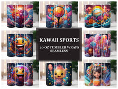Get into the game with our Kawaii Sports seamless tumbler wraps. Featuring charming illustrations of kawaii characters engaged in a variety of sports and activities, these wraps bring the excitement of the field to your tumbler. Whether you're cheering from the sidelines or joining in on the action, let these delightful wraps add a touch of whimsy to your tumbler and make every sip a reminder of the thrill and camaraderie of sports in the company of lovable kawaii characters scoring goals, making baskets, and hitting home runs.