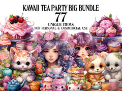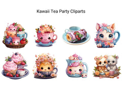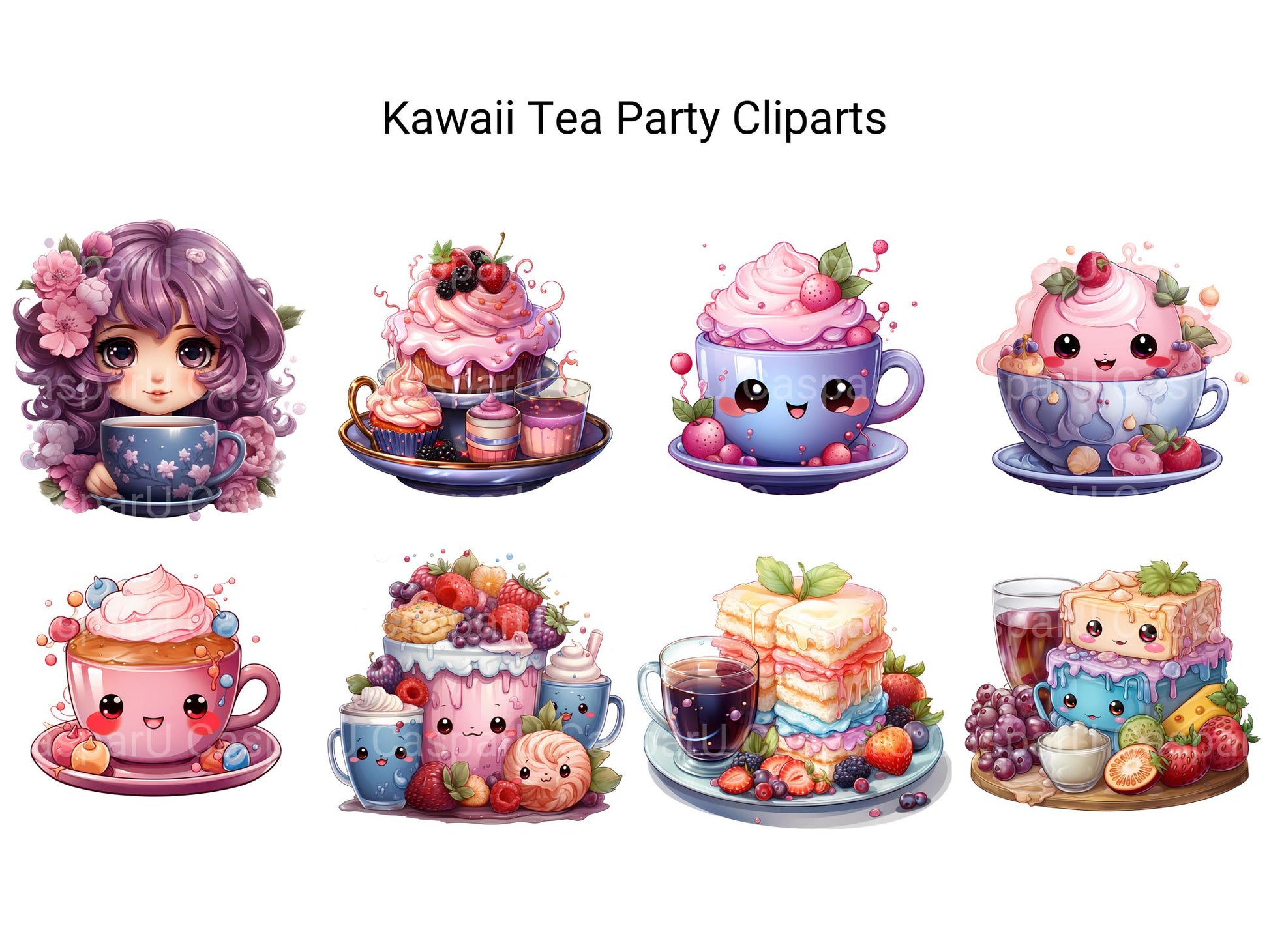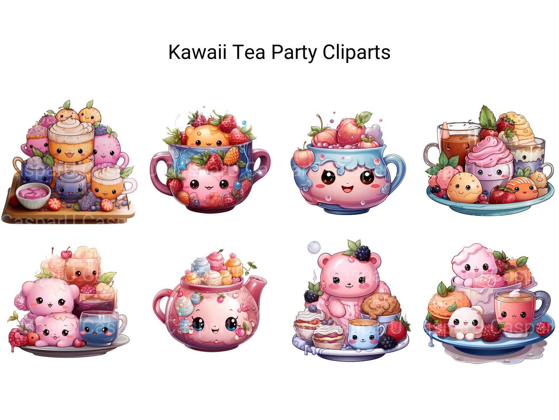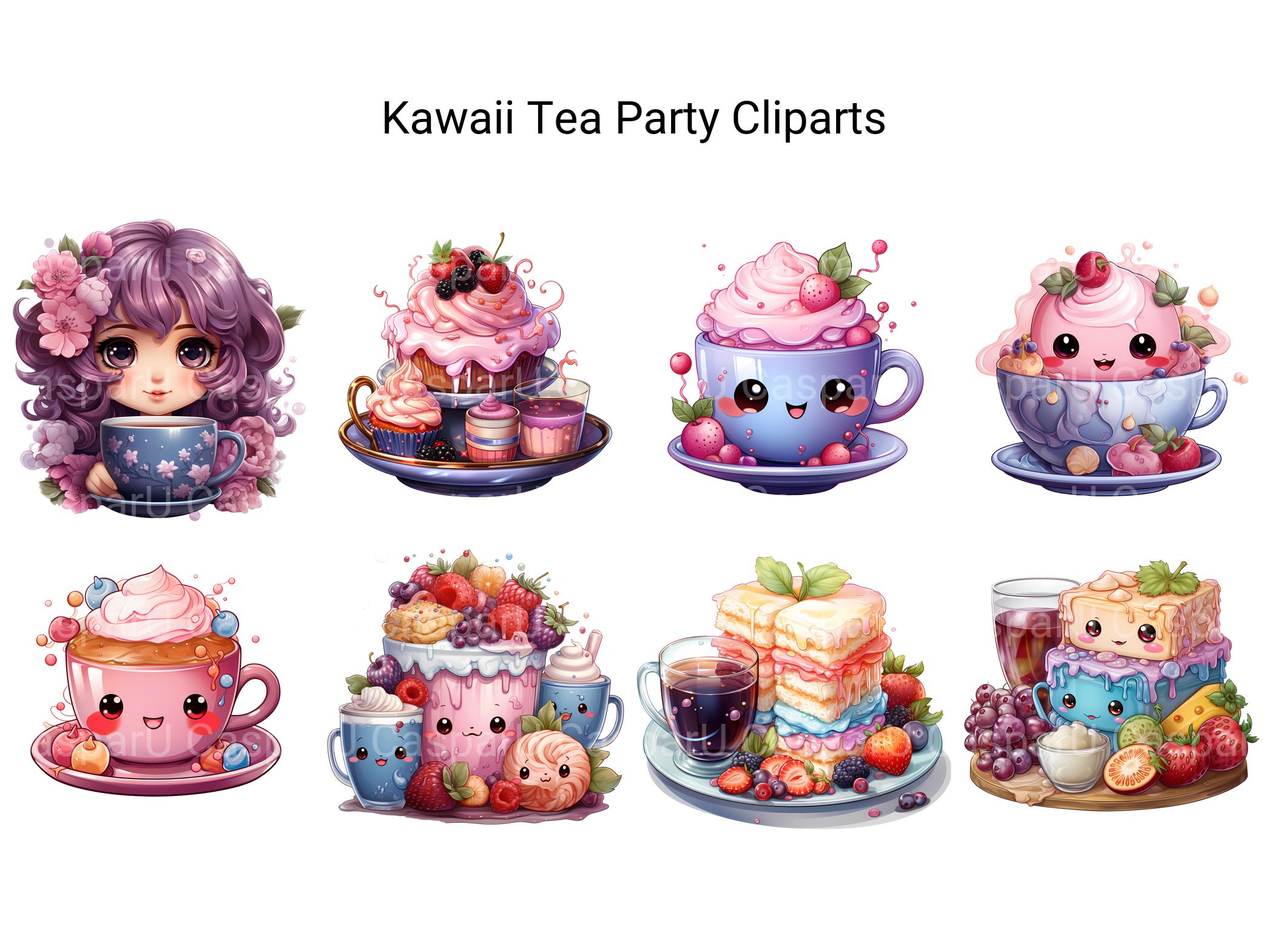 Indulge in the sweetness of Kawaii Tea Party clip art. These digital illustrations showcase cute characters enjoying a charming tea party with delightful treats and elegant decor, perfect for adding a touch of elegance and whimsy to your projects, whether for invitations, greeting cards, or vintage-themed designs, inviting viewers to join in the enchanting tea time fun.