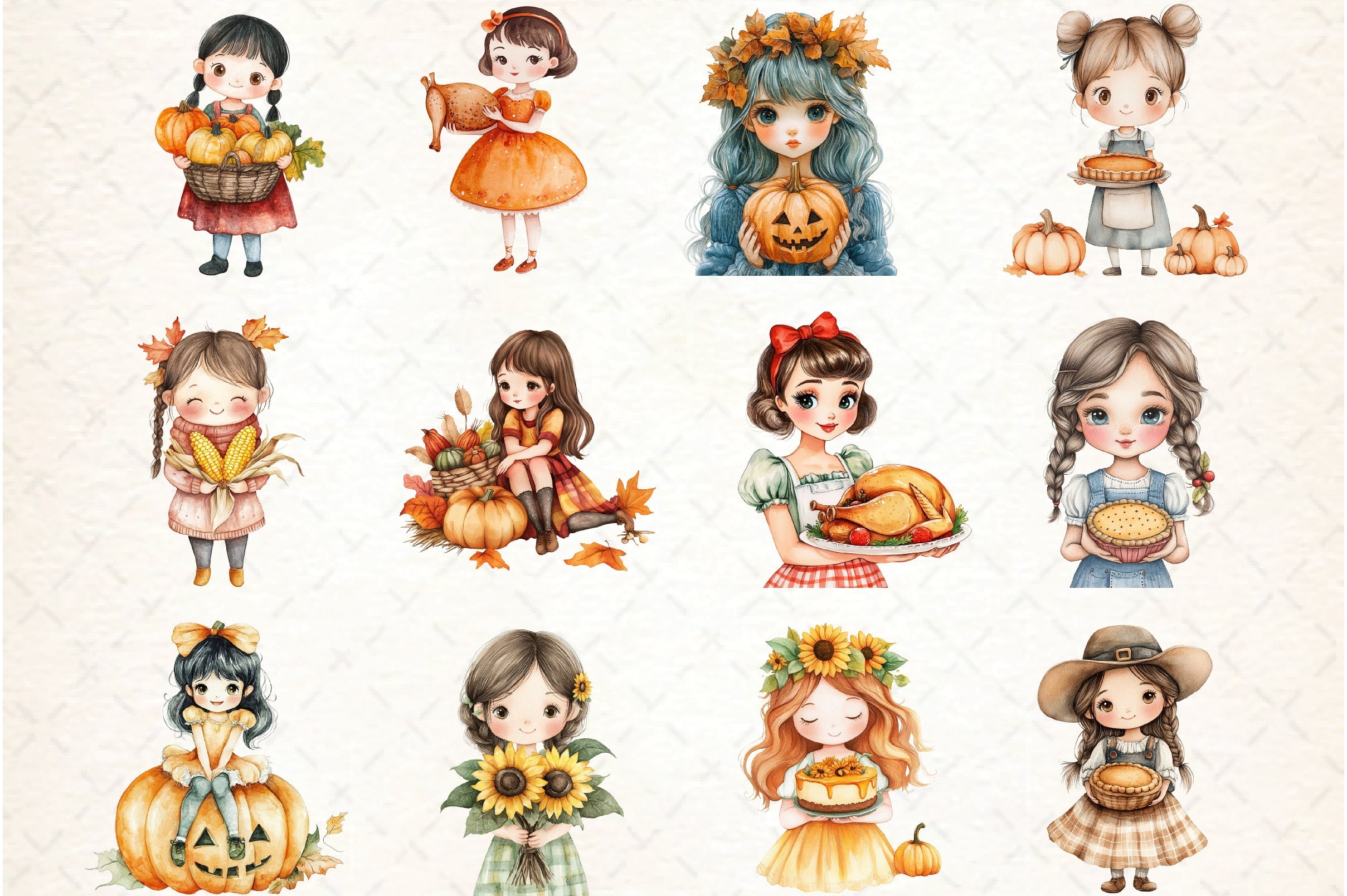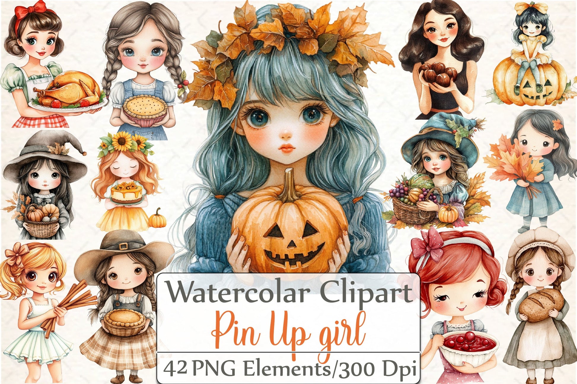 Embrace the charm of the Kawaii Thanksgiving Pin-Up Girl Clipart Bundle, featuring delightful and whimsical designs perfect for festive projects. Ideal for creating enchanting holiday crafts, these adorable illustrations bring a playful touch to your Thanksgiving decor. Unleash your creativity with this unique collection, perfect for scrapbooking, invitations, and more. Add a dash of cuteness to your seasonal celebrations with these irresistible clipart designs.