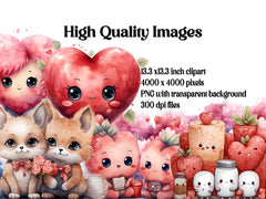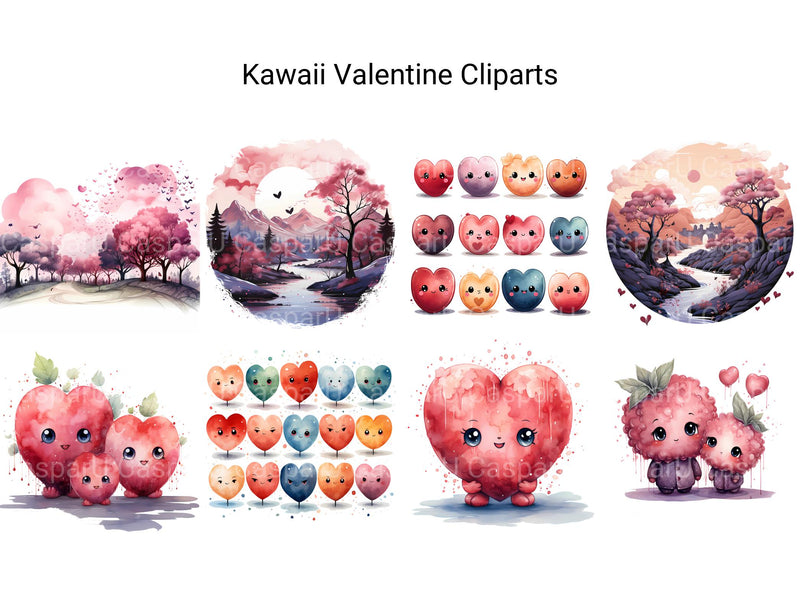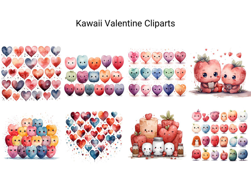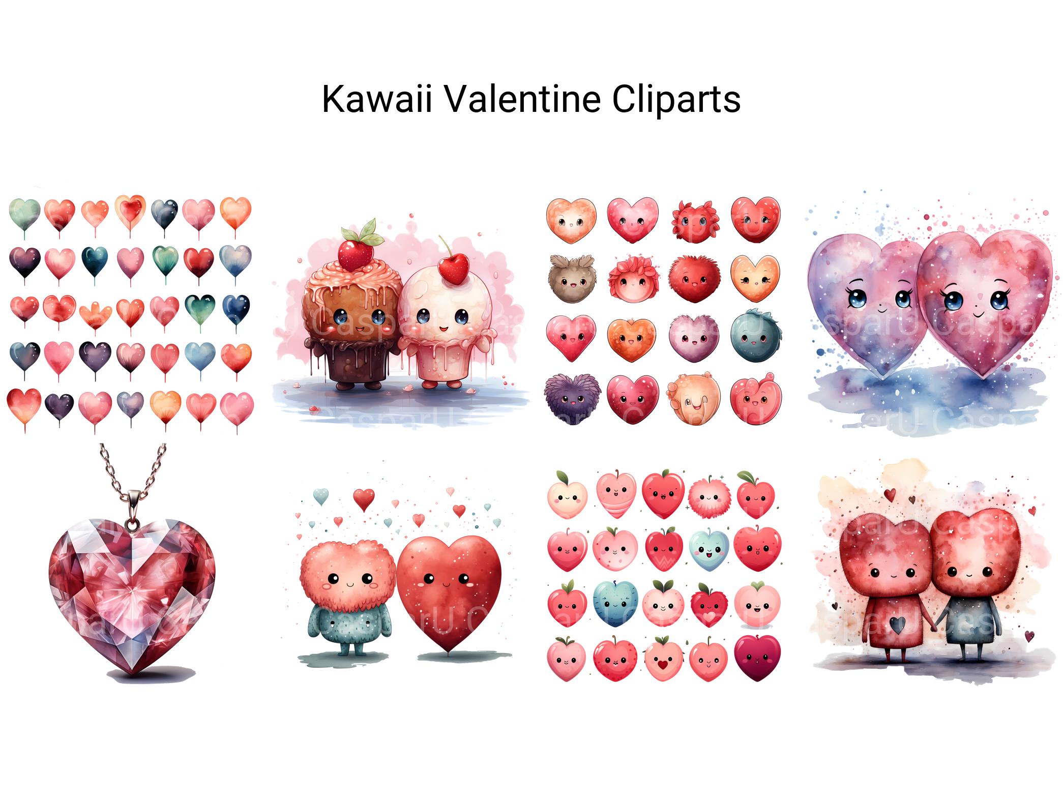Spread smiles and sweetness with digital clipart featuring kawaii-themed Valentine's Day illustrations. From adorable characters to cute motifs, these charming images radiate warmth and happiness, perfect for adding a touch of cuteness to your Valentine's Day projects. Let the irresistible charm of kawaii bring joy and laughter to your celebrations, inviting viewers to share in the delight of love's most adorable moments with friends and loved ones.