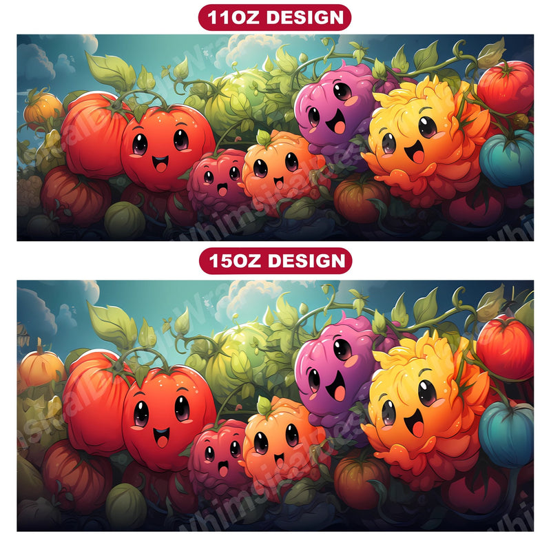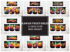 Savor the cuteness with our Kawaii Vegetables digital mug wraps. These adorable designs feature cute vegetable illustrations and vibrant colors, evoking the freshness and goodness of garden-fresh produce, making them a delightful addition to your mug collection and a perfect way to start your day with a sprinkle of veggie-inspired joy and kawaii charm.